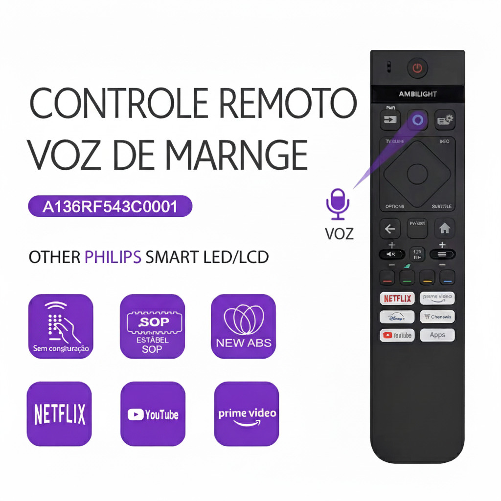Controle Remoto para TV Philips Ambilight com Voz 43PUS7009/12 43PUS7609/12 398GR10BEPHNE000SY 398GR10BEPHNE000CR