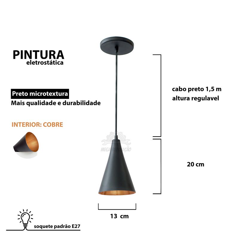 kit 2 pendentes preto com cobre alumínio luminária para balcão cozinha americana sala banheiro cozinha quarto, Decoração