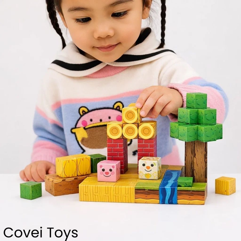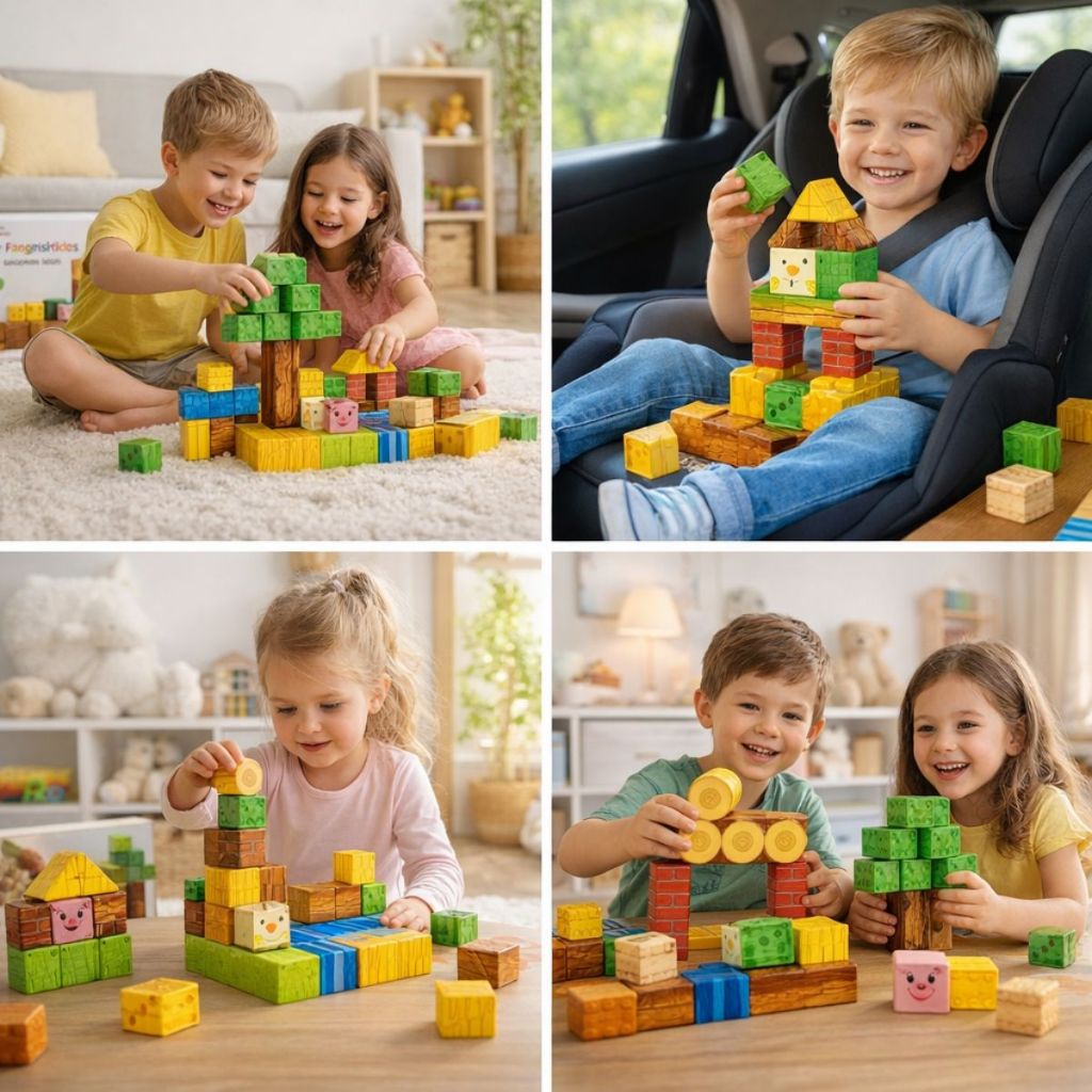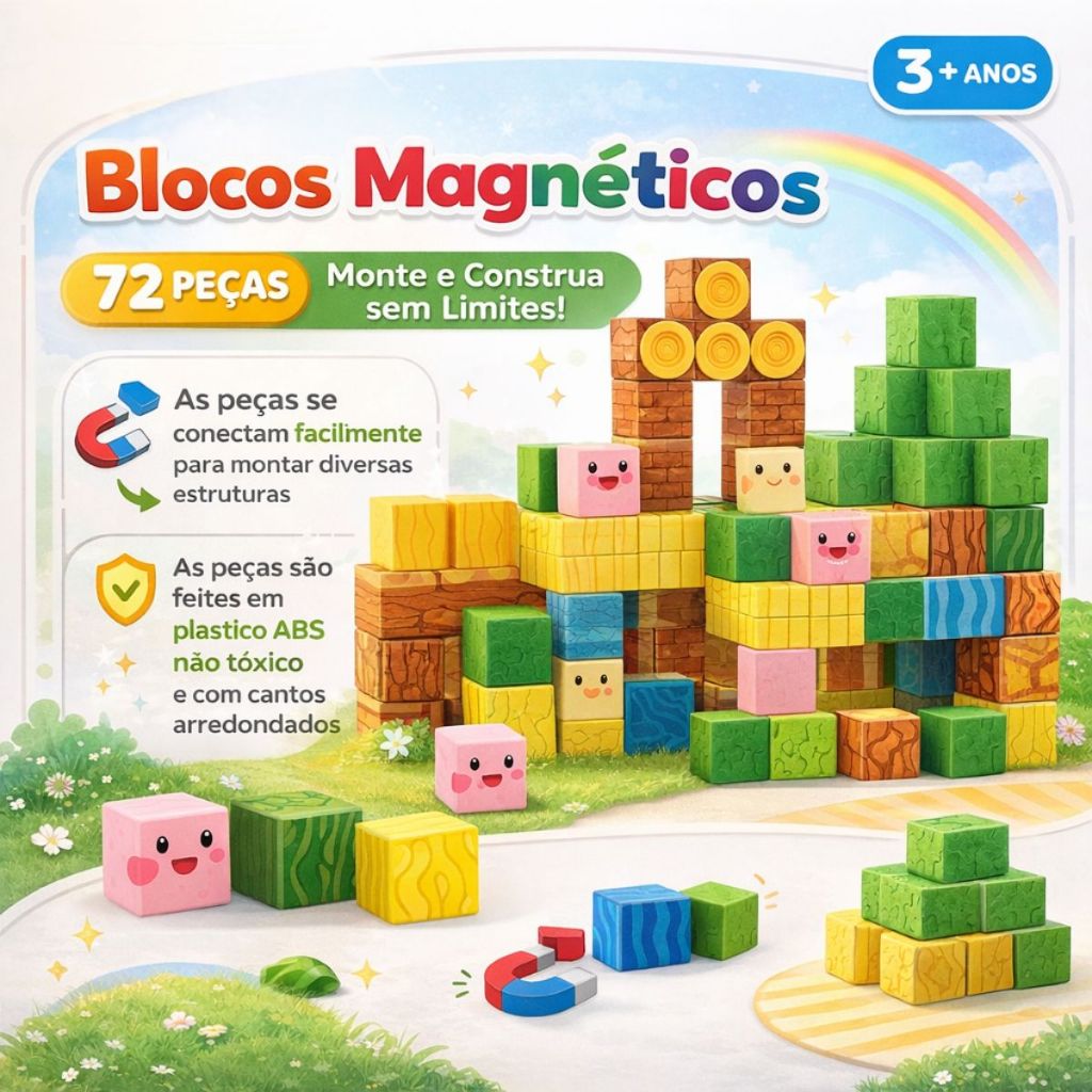 Bloco De Montar Magnético Infantil Cubos Construção 72 Peças