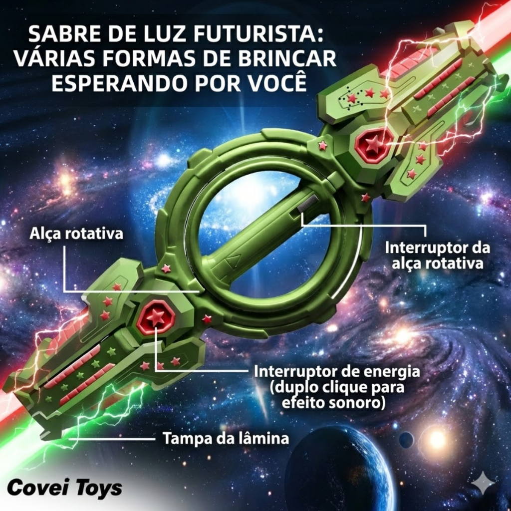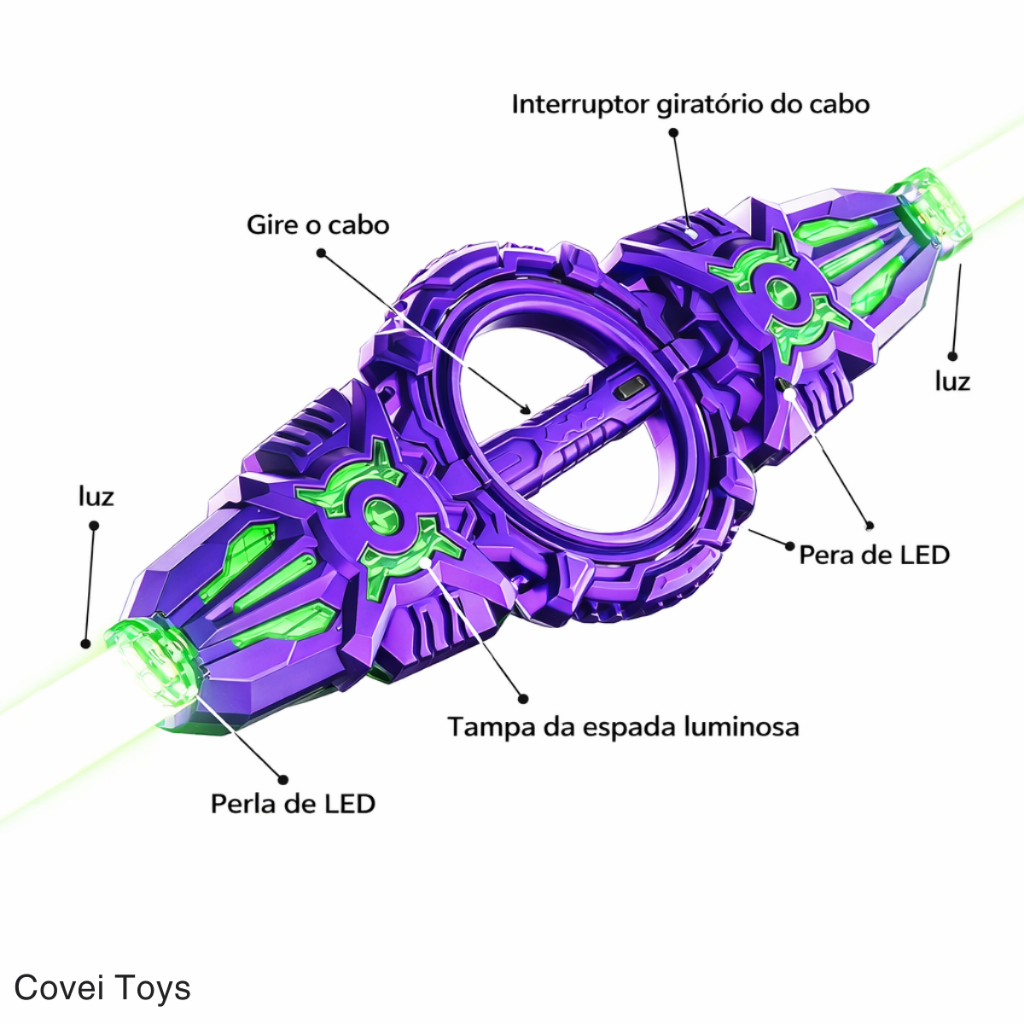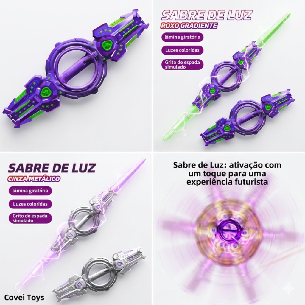 Sabre Luz Espada Infantil LED 360 Graus Som Lâmina Rotativa Espada Futurista Brinquedo Eletrônico Aventuras Espaciais