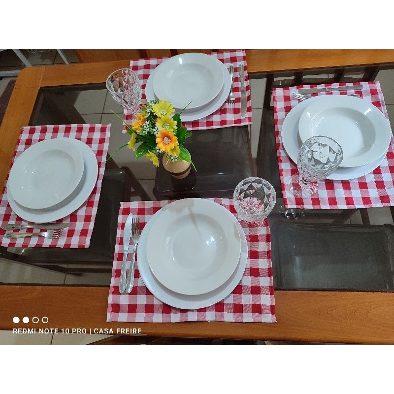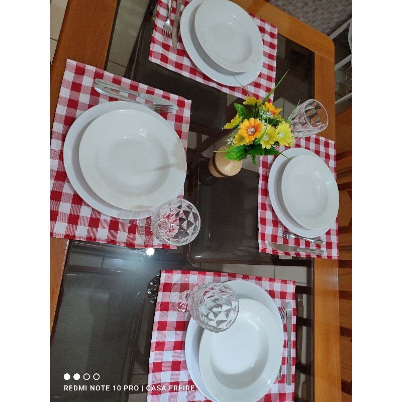 kit jogo americano xadrez vermelho com 4 unidades/mesa posta