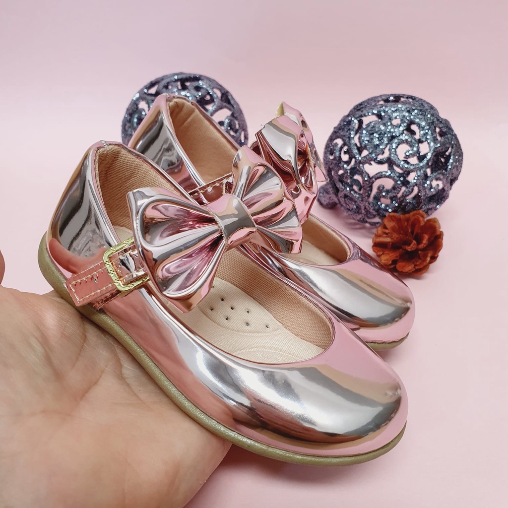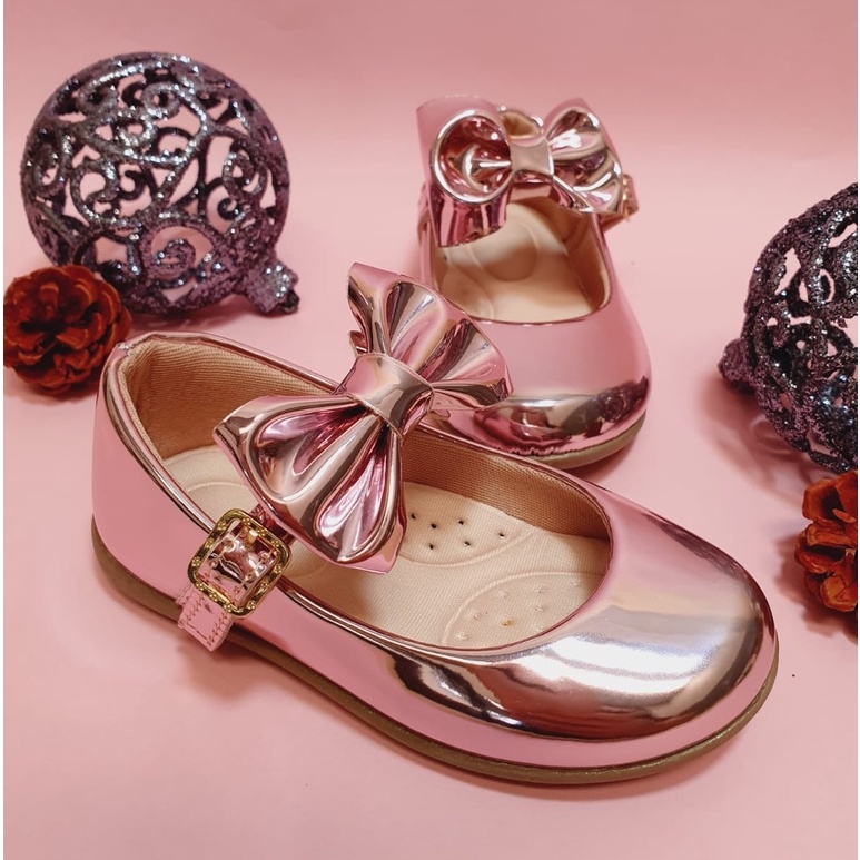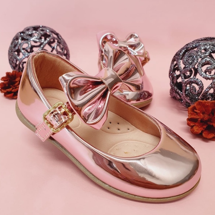 Sapatilha Infantil Feminina Rosê espelhada Laço Casual