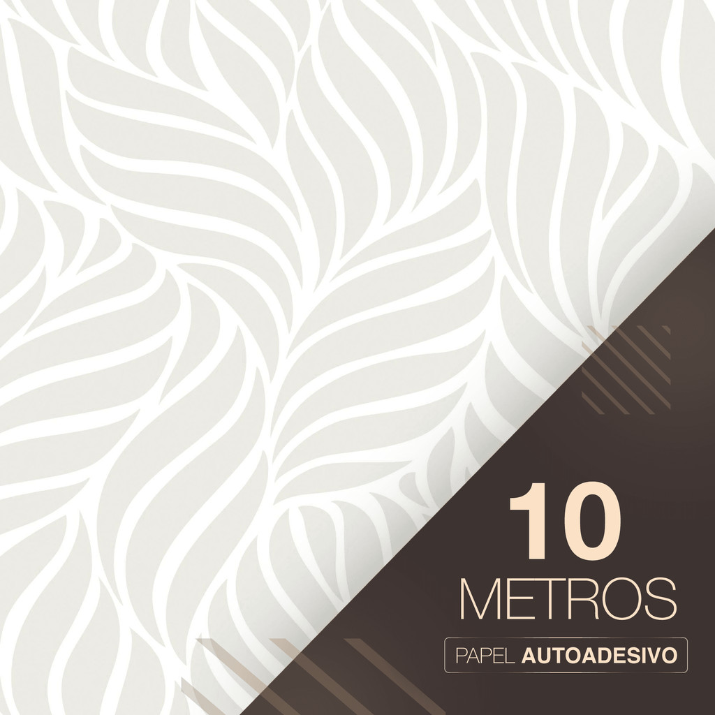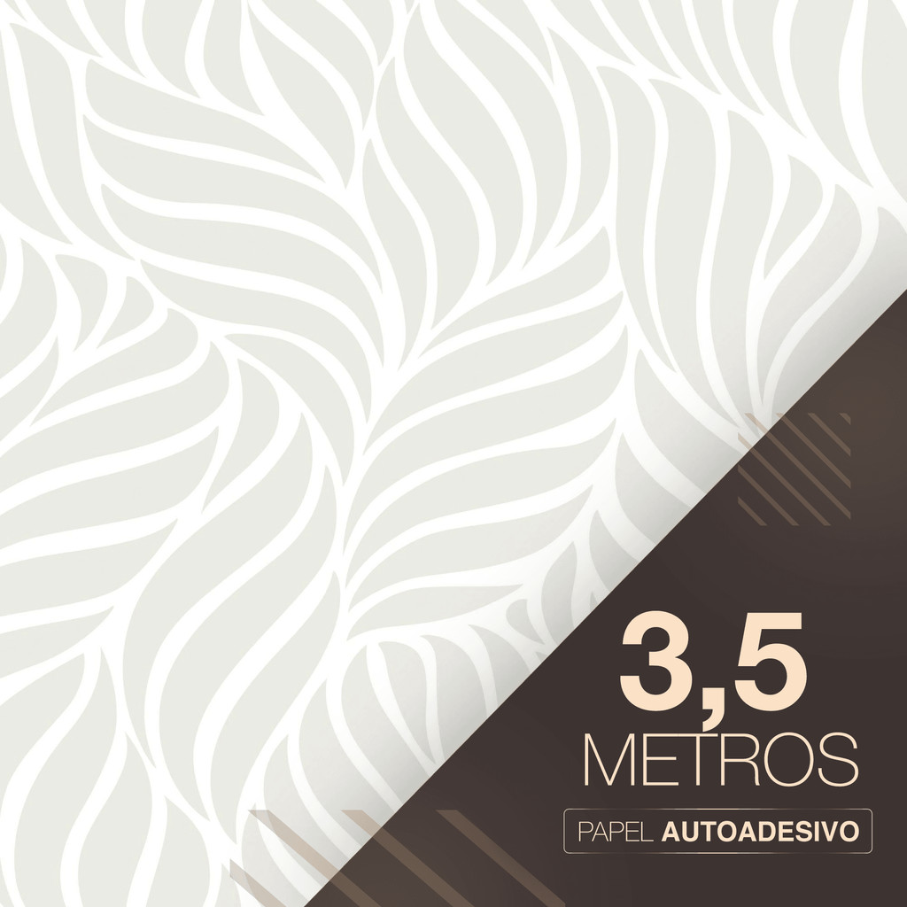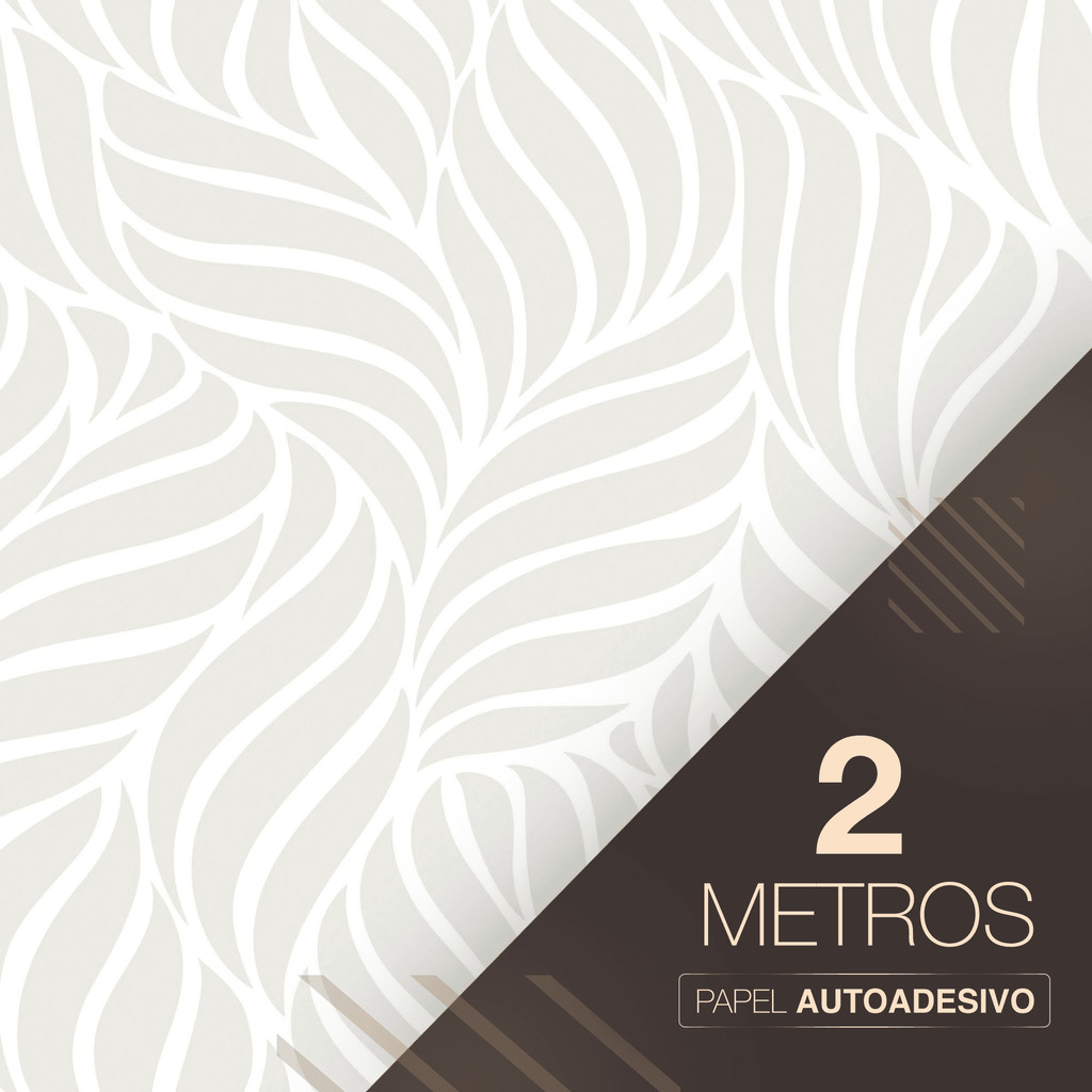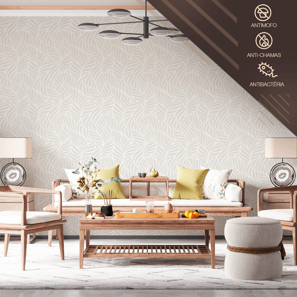 Papel de Parede Vinílico Adesivo Cinza Claro Folhas Curvas Fácil de Aplicar
