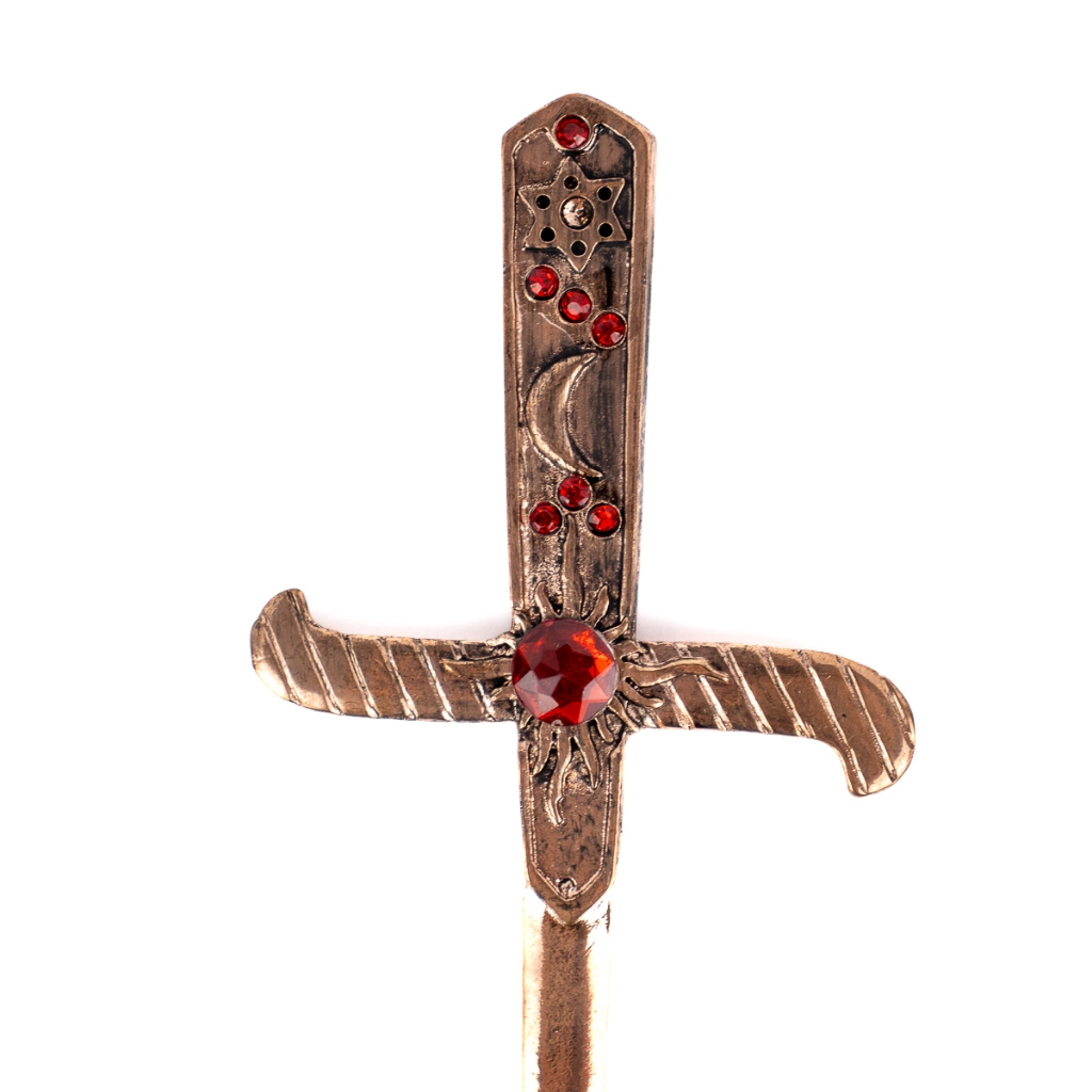 Athame em Metal Cobre Envelhecido 19 cm Pedras Vermelhas