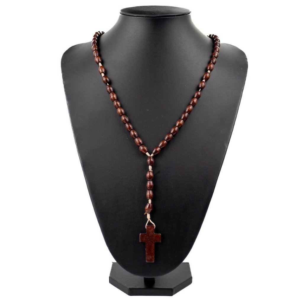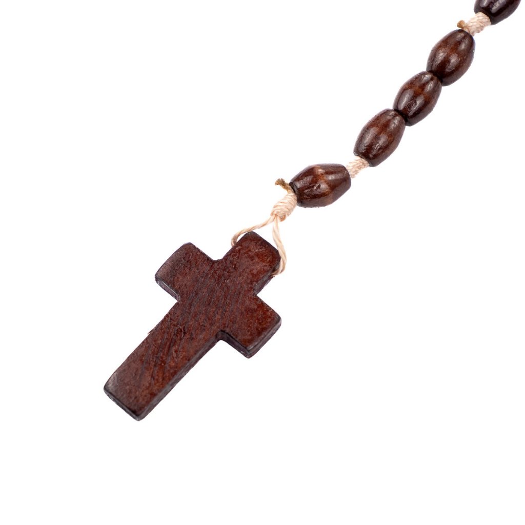 Terço de madeira com crucifixo 42 cm conta 8 mm Marrom