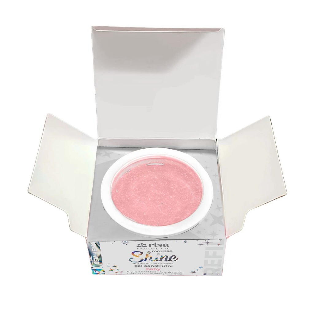 Refil Gel Construtor Mousse Shine com brilho SEM HEMA LED/UV Risa 15g