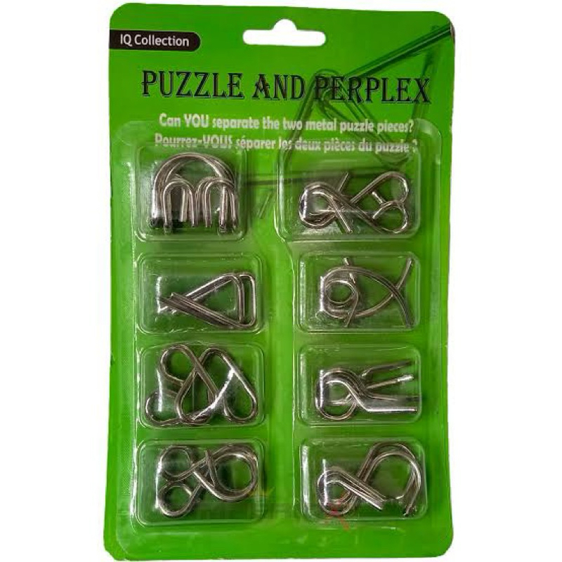 kit quebra cabeça puzzle metal com 8 pecas