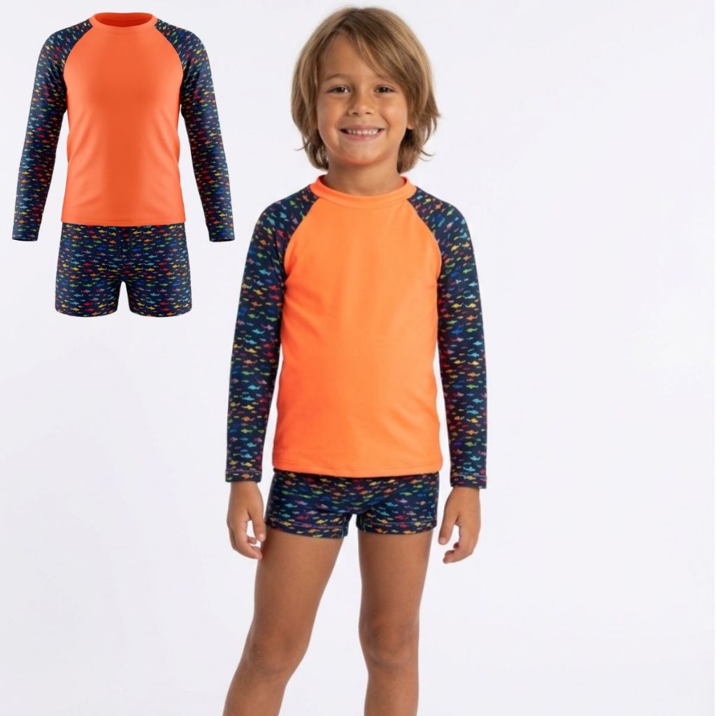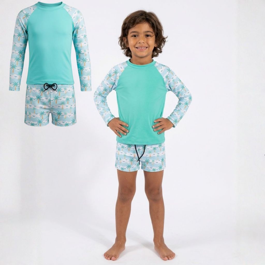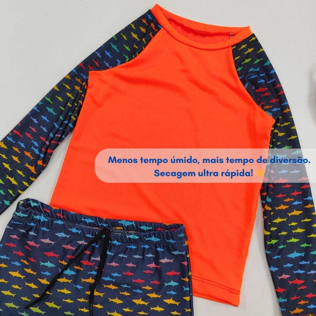 Conjunto Camiseta e Sunga Infantil Praia Piscina Tam 2 4 6 8 10 Anos