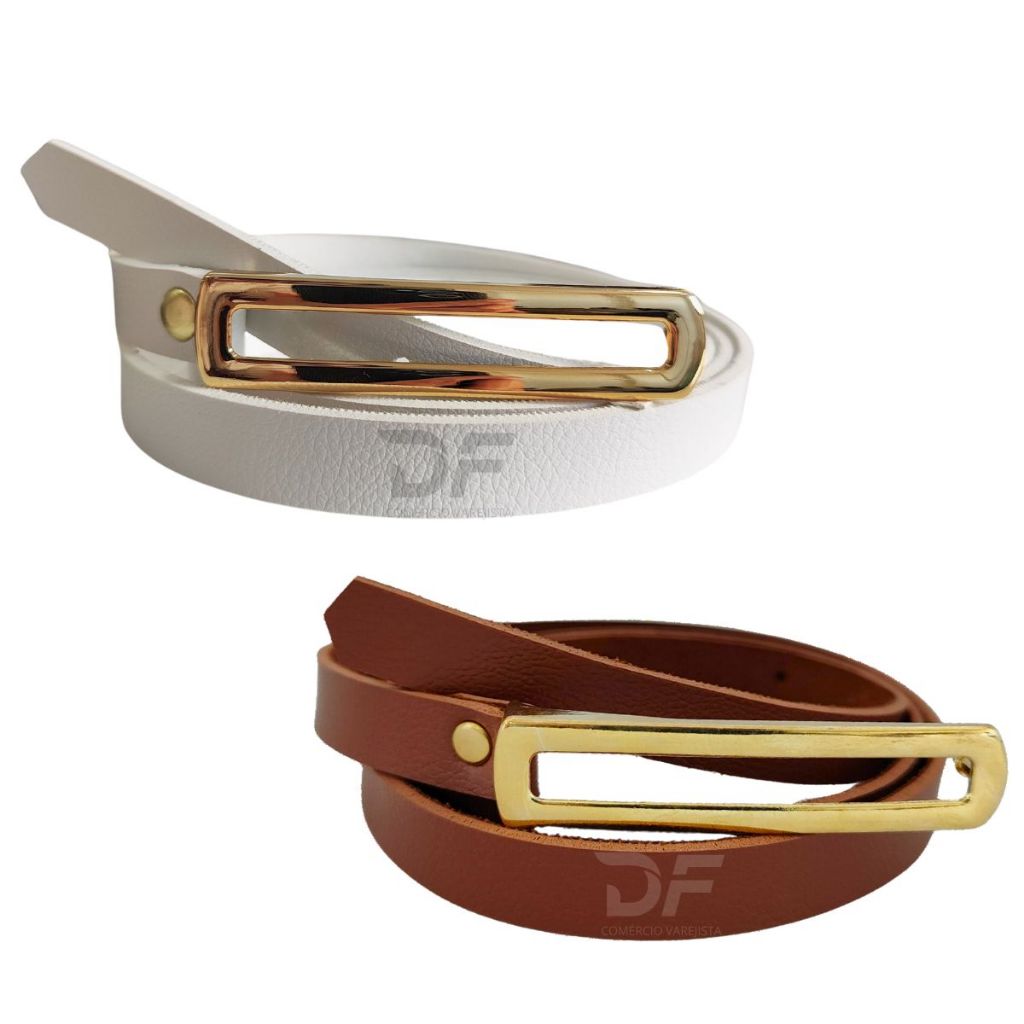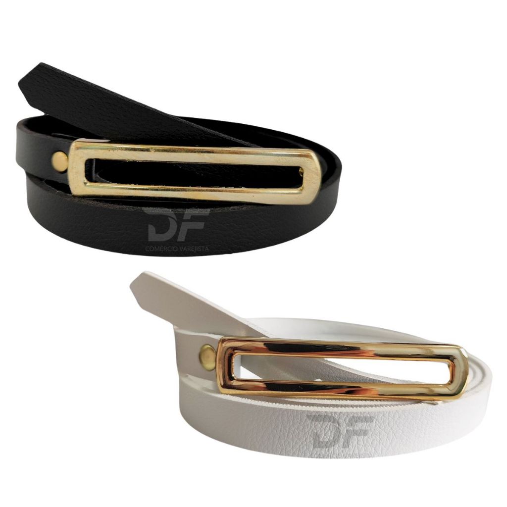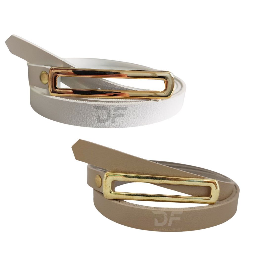Kit 2 Cintos Fino Fivela Comprida Dourada