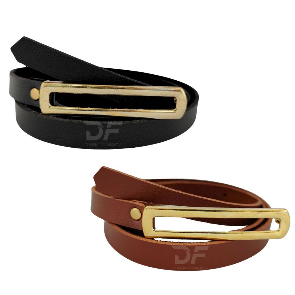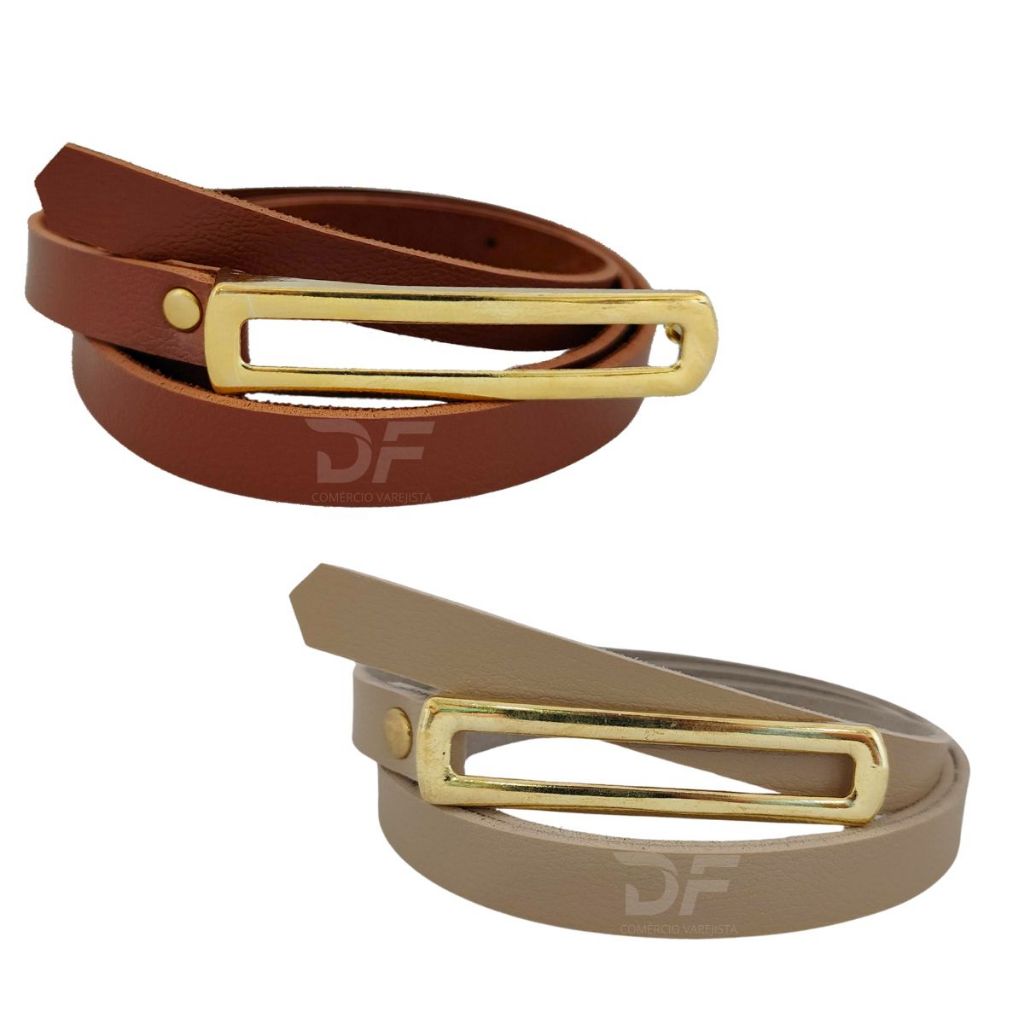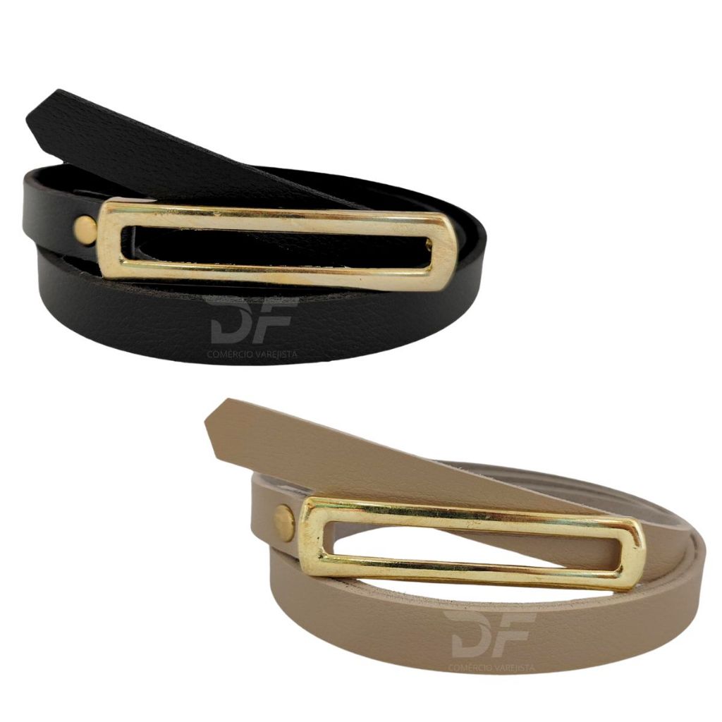 Kit 2 Cintos Fino Fivela Comprida Dourada