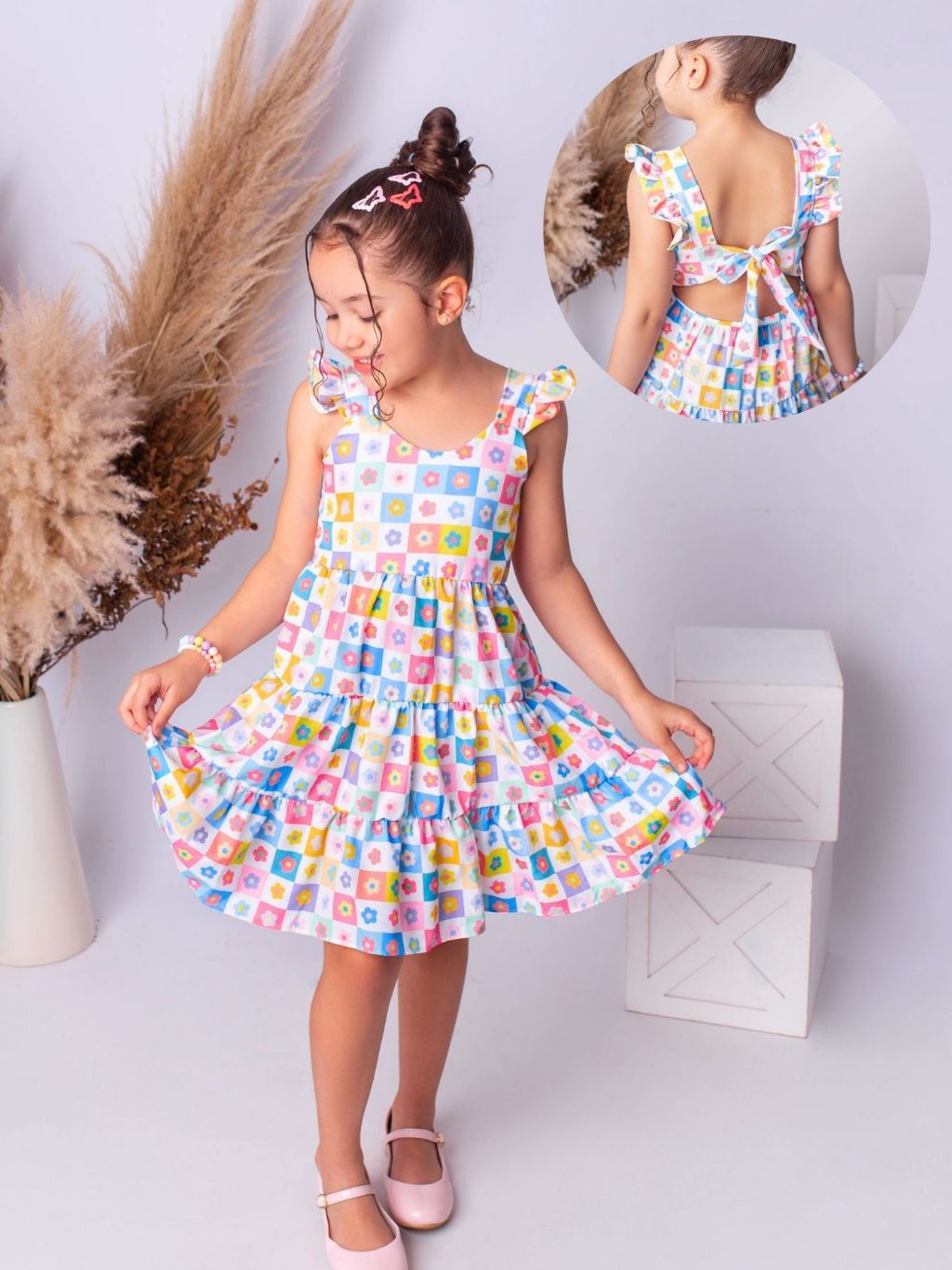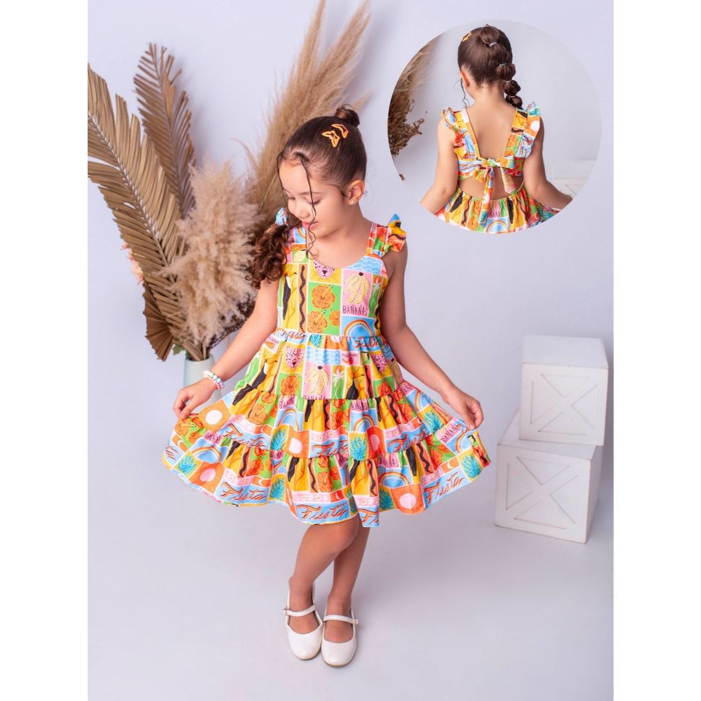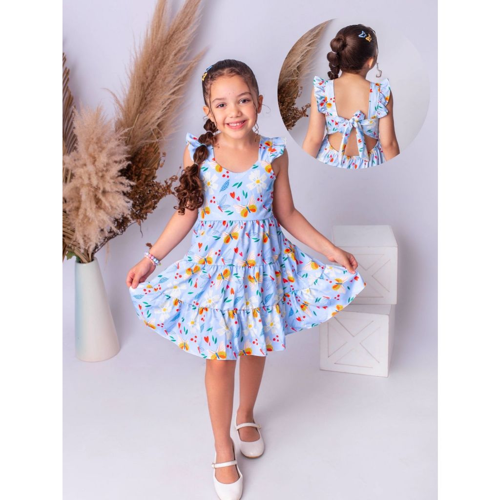 Vestido Infantil Laço Nas Costas Saia Rodada Floral Festa Aniversário 4 6 8 10