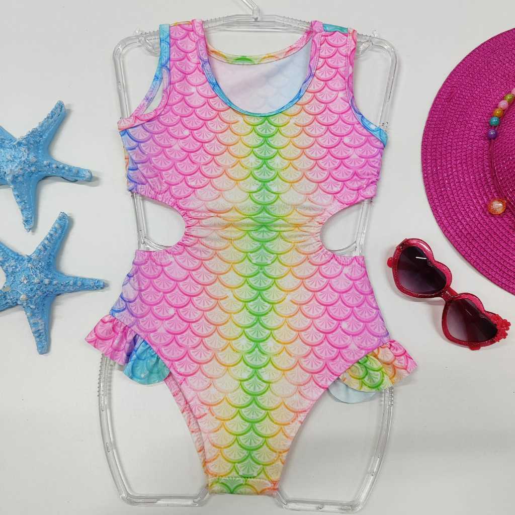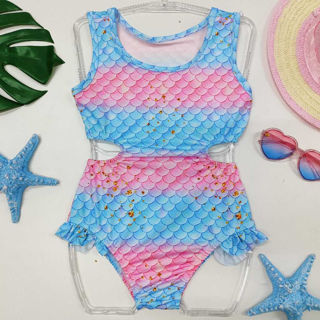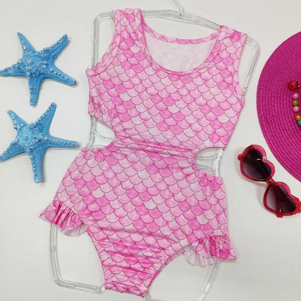 Maiô Infantil Menina Com Babado Moda Praia Piscina Aberto Nas Costas Sereia 2 a 10 anos