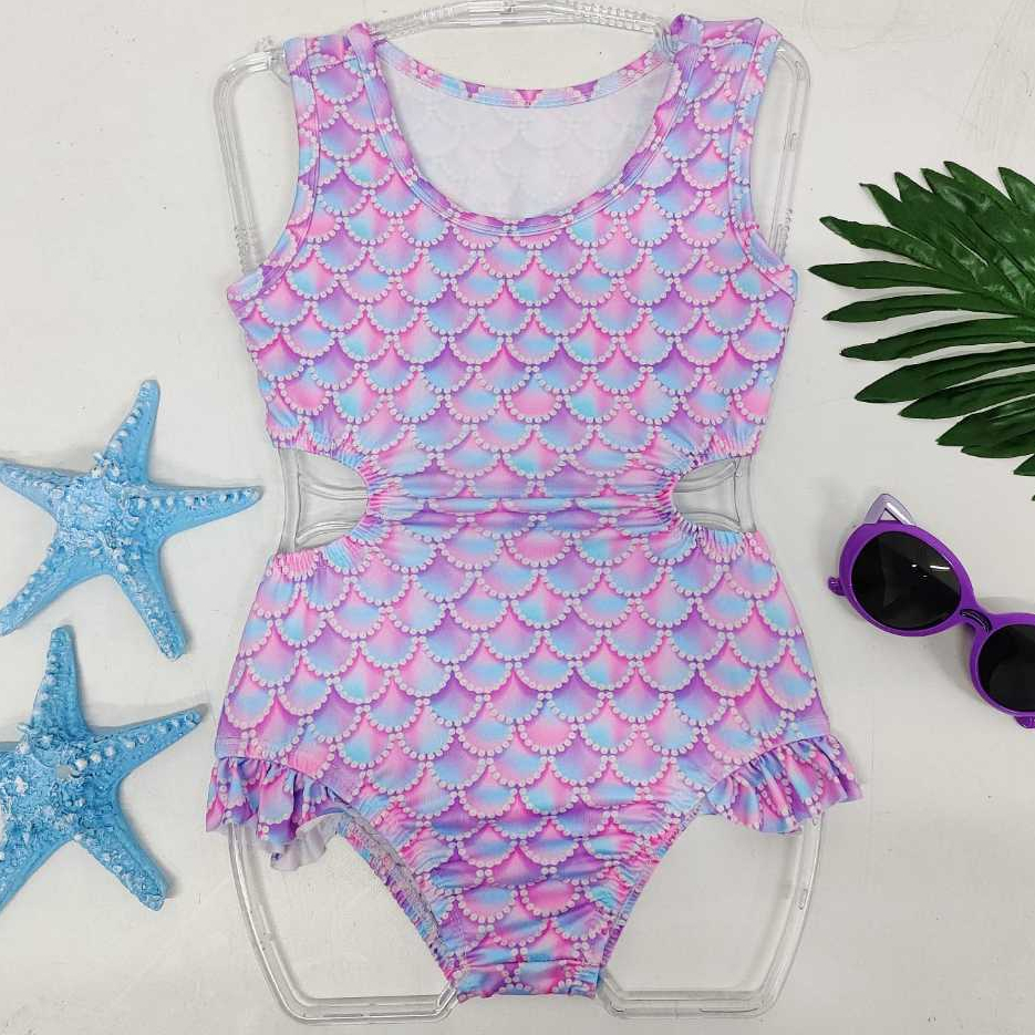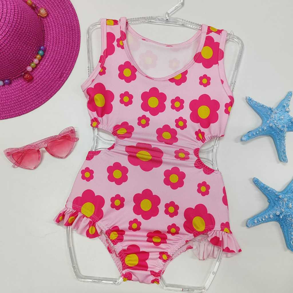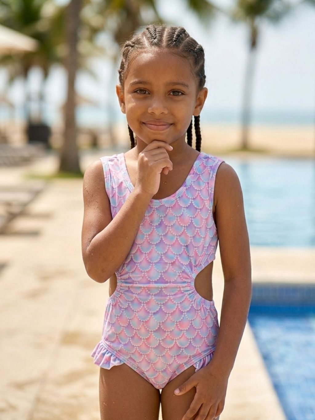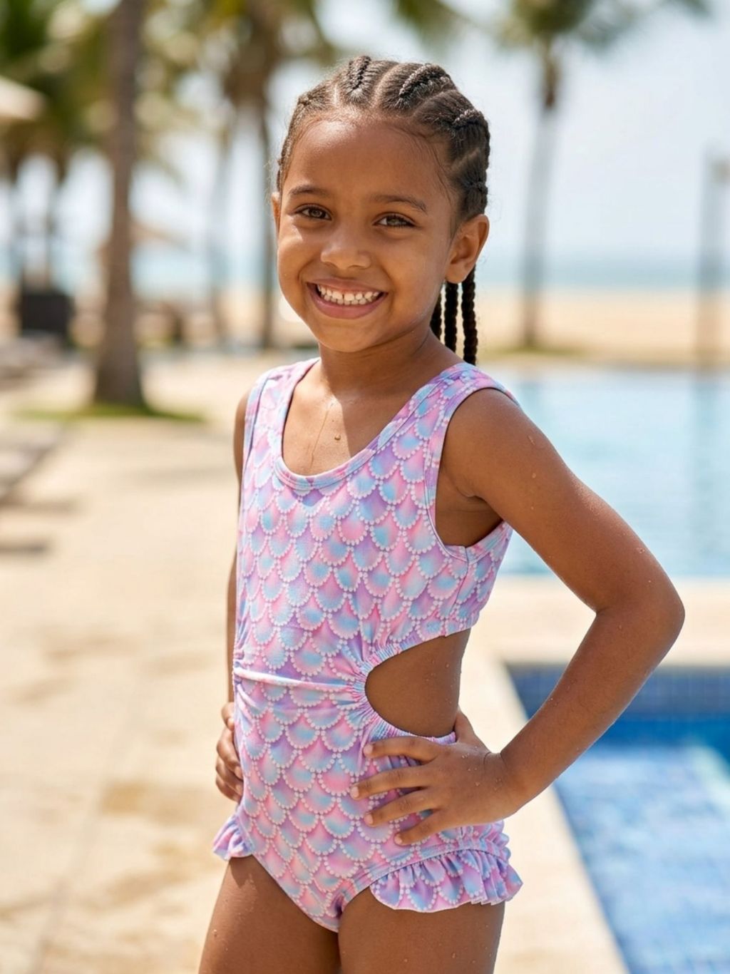 Maiô Infantil Menina Com Babado Moda Praia Piscina Aberto Nas Costas Sereia 2 a 10 anos