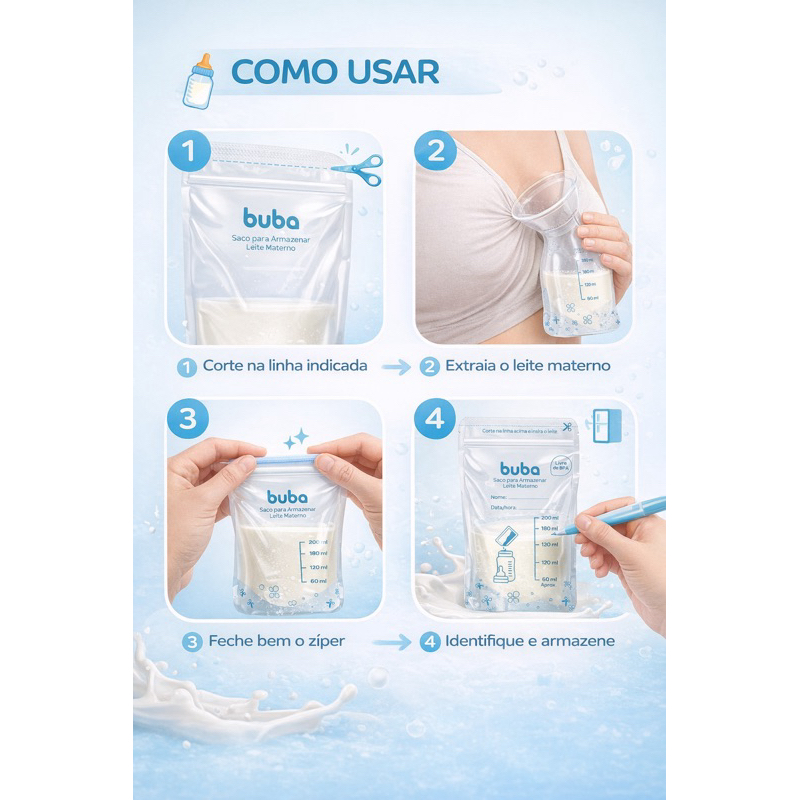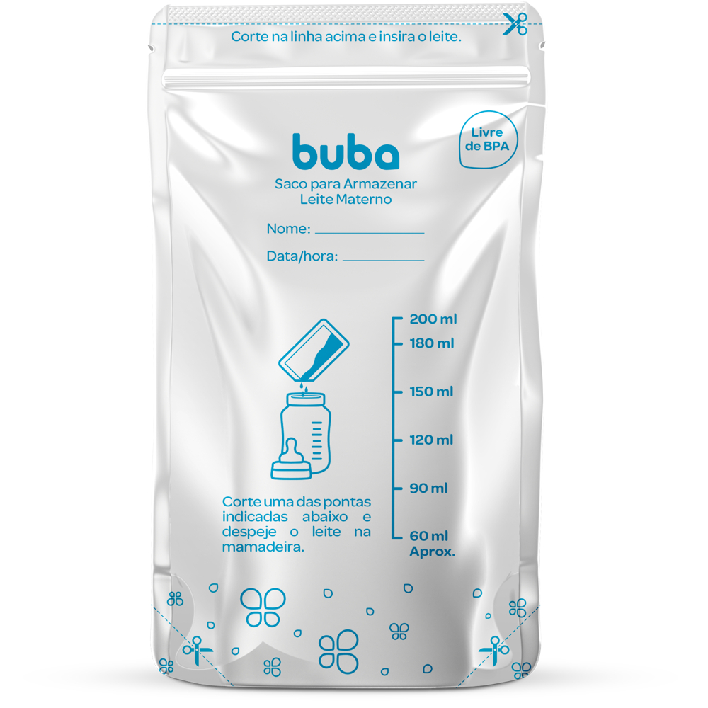 Sacos Para Armazenar e Congelar Leite Materno 200ml Descartável Buba 25 / 50 / 100