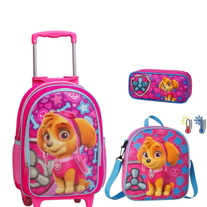 Kit Mochila Patrulha Canina Skye Rodinhas + Lancheira Térmica + Estojo