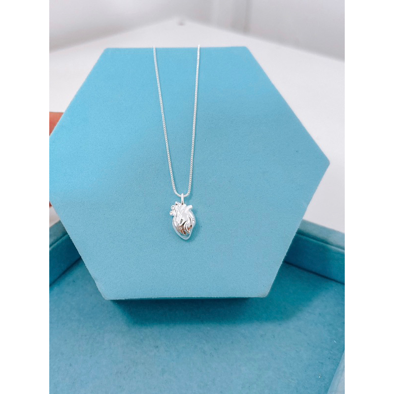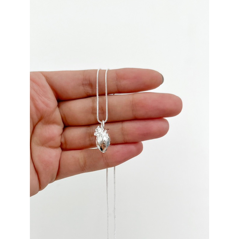 Colar coração realista banhado à prata 925