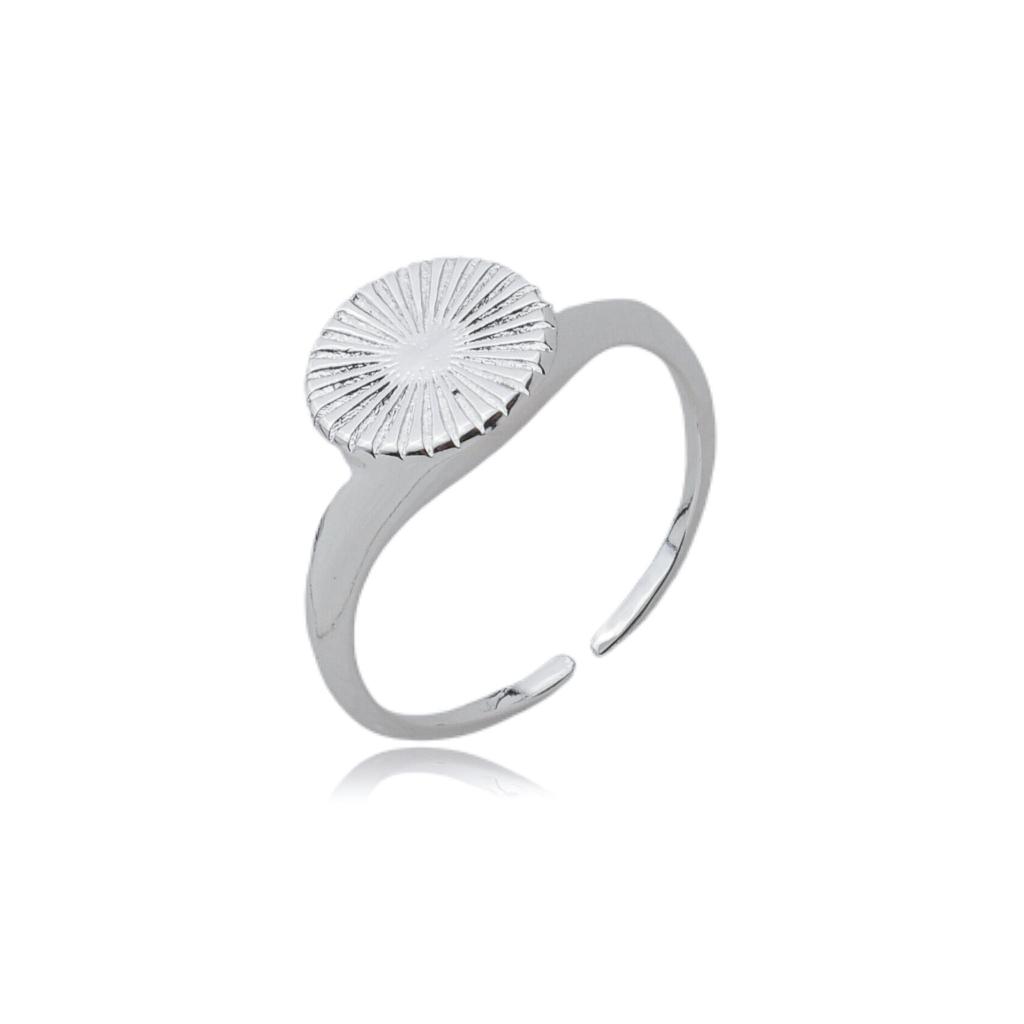 Anel regulável moeda riscada banhado à prata 925