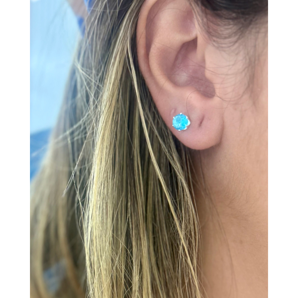 Brinco redondo zircônia azul à prata 925