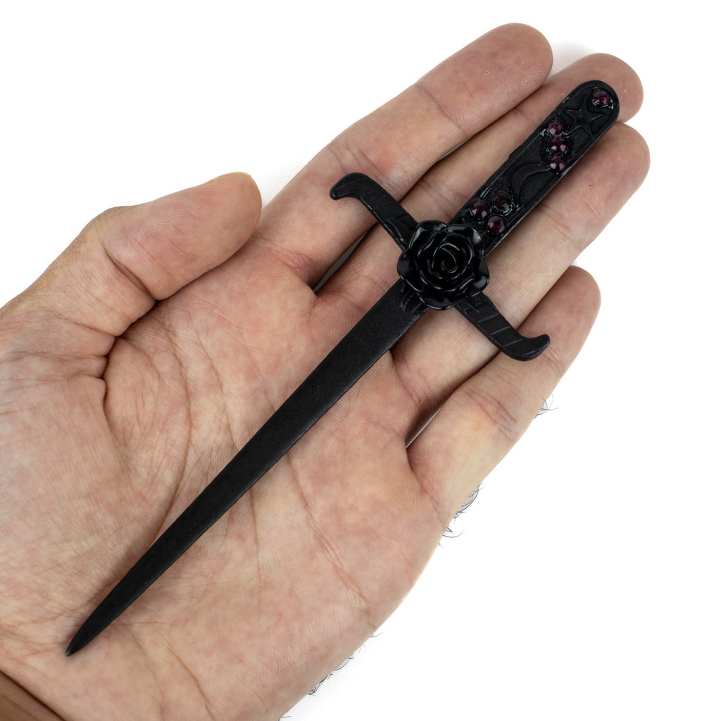 Athame Negro em Metal com Rosa Negra 16,50 cm