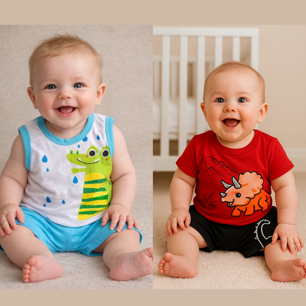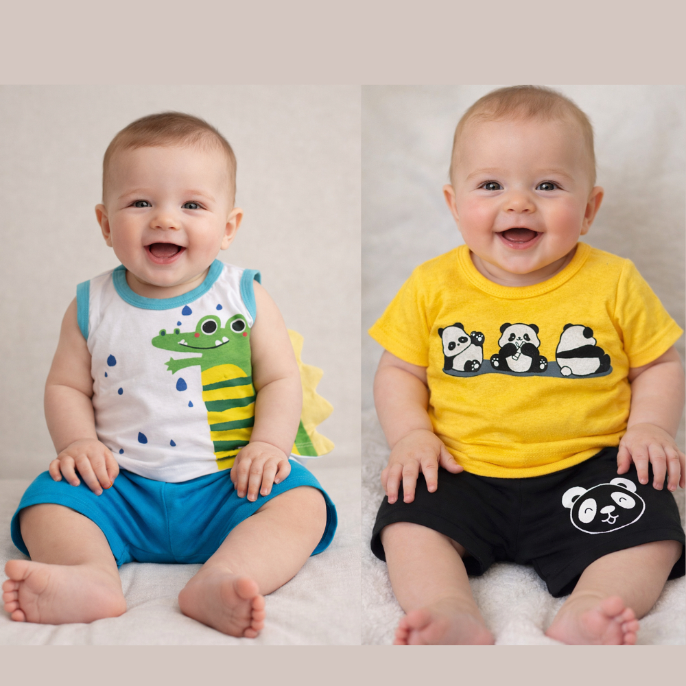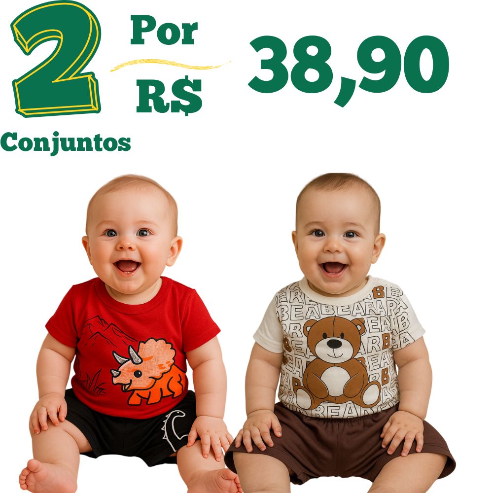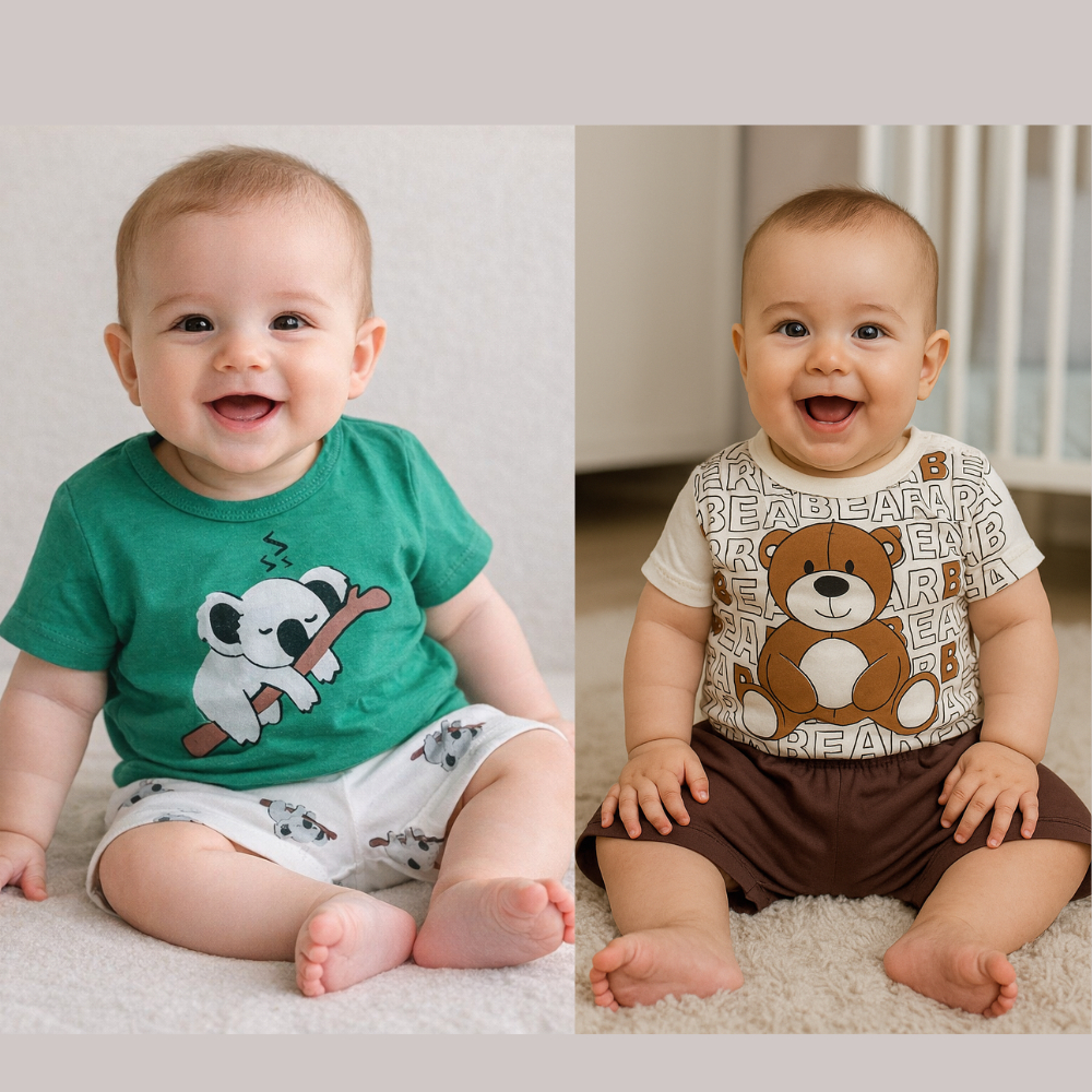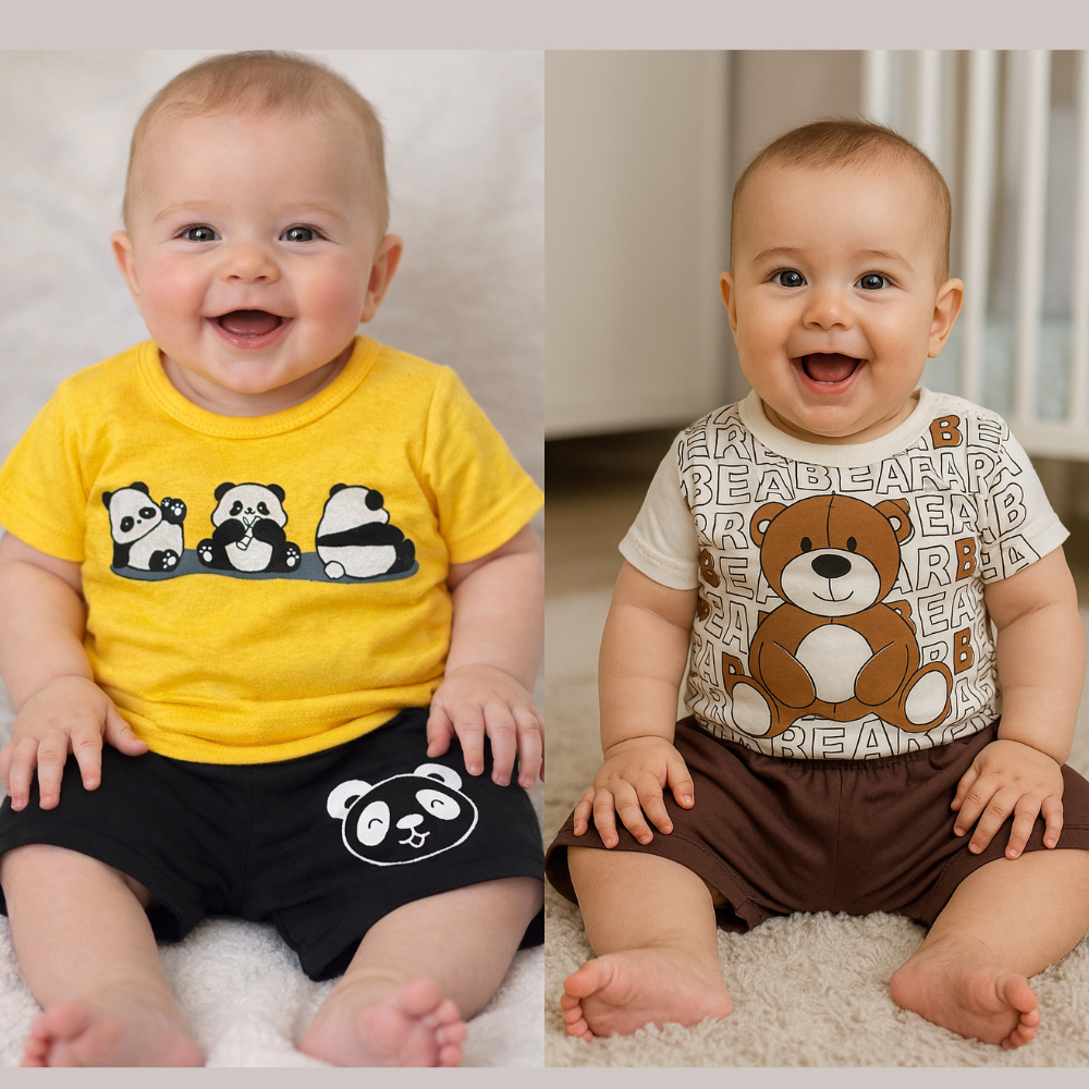 Kit Roupa De Bebê 4 Peças Menino 2 Camisetas 2 bermudas - 2 conjuntos - tamanho único G (3 a 6 meses) verão - menino
