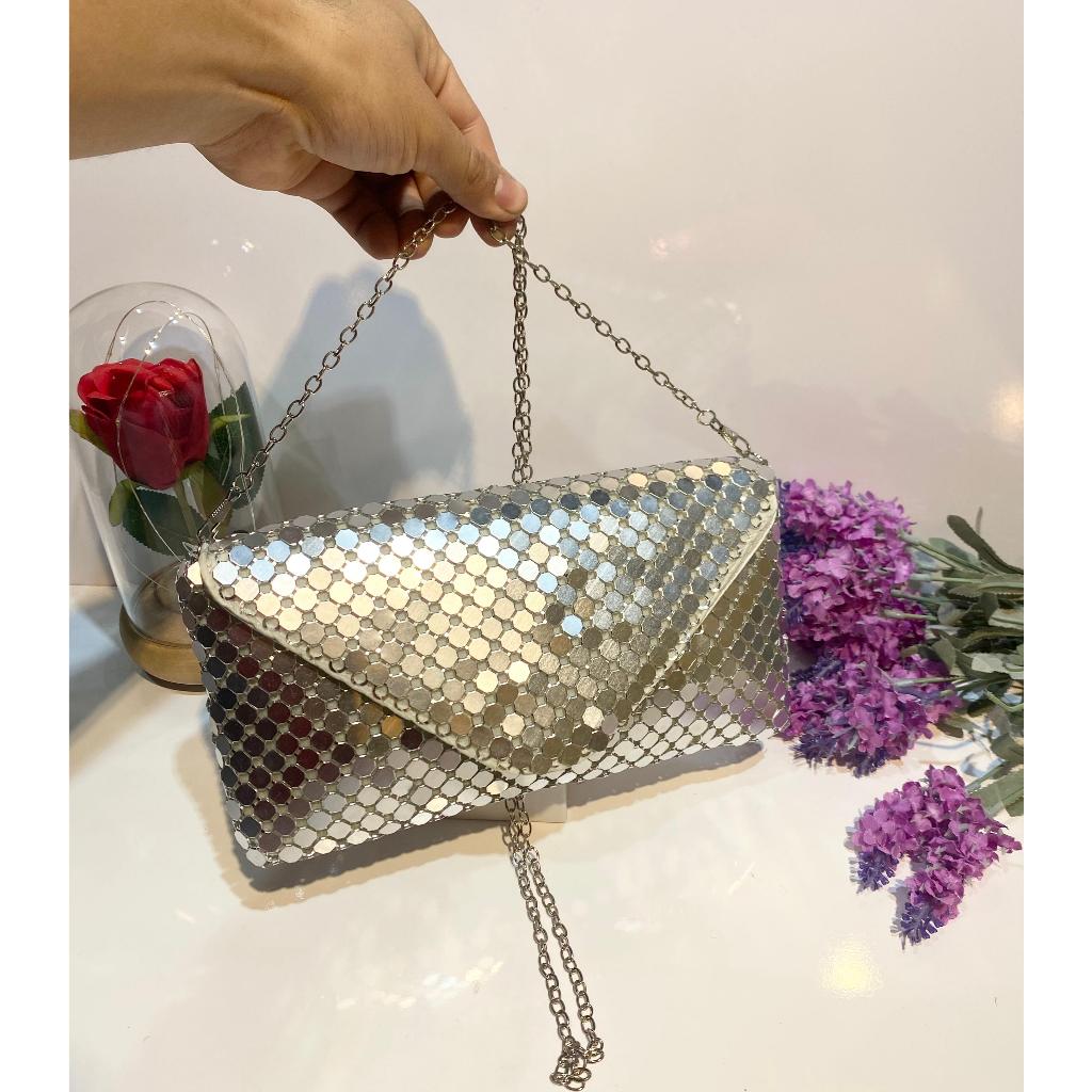 Bolsa Clutch Com Alça Formato Placa Metalizada Geometrica Para Festas e Formaturas 900278