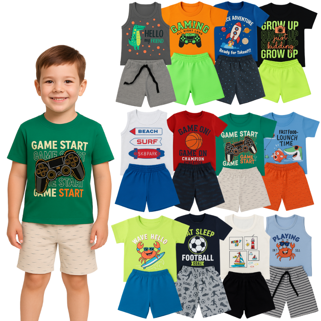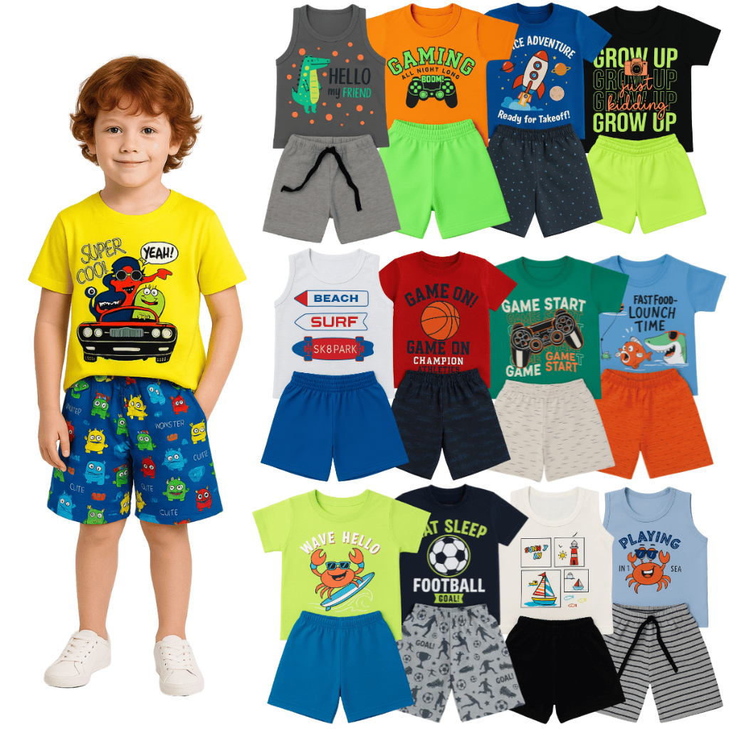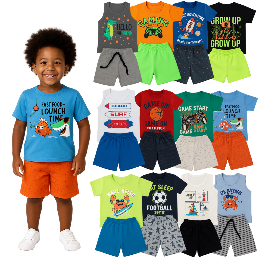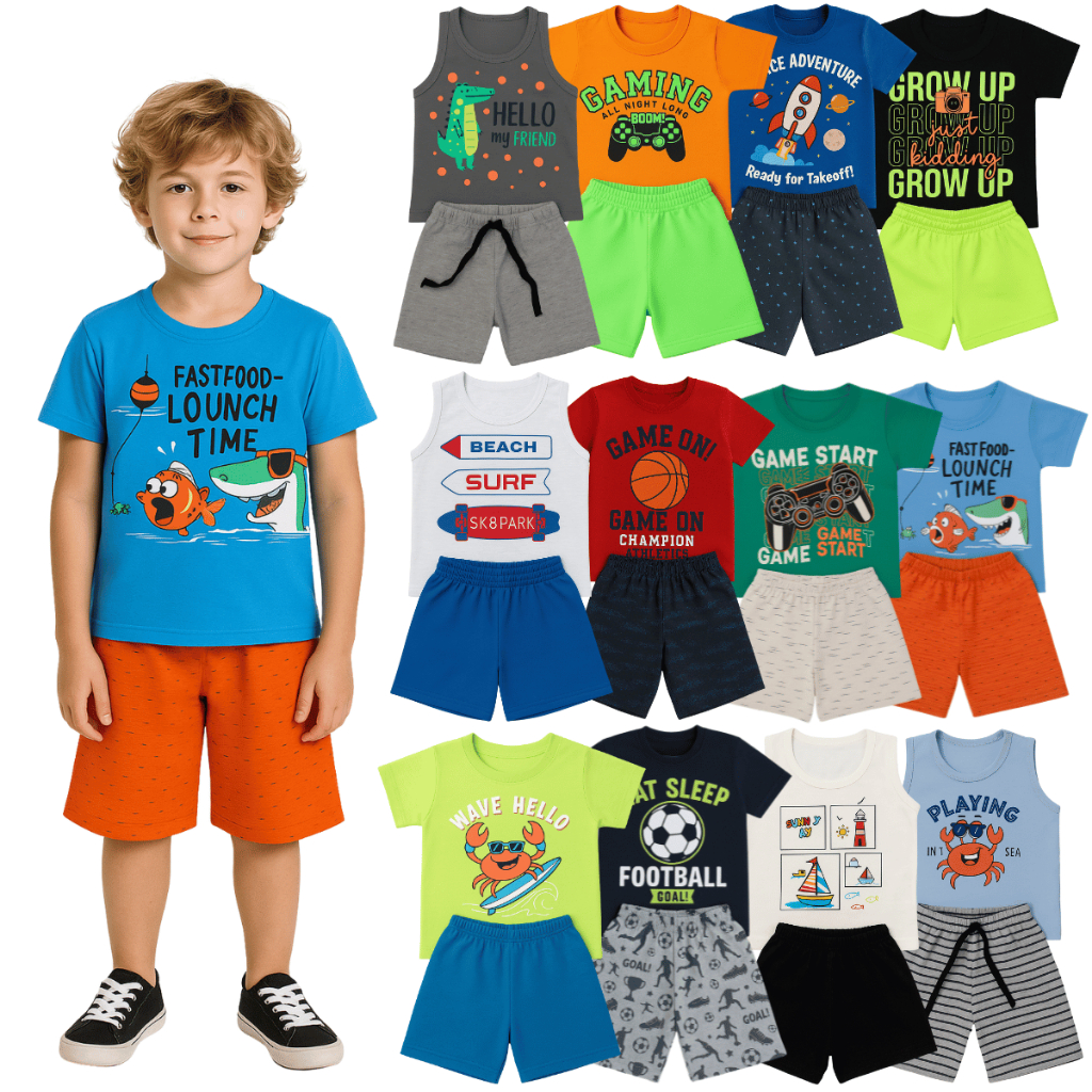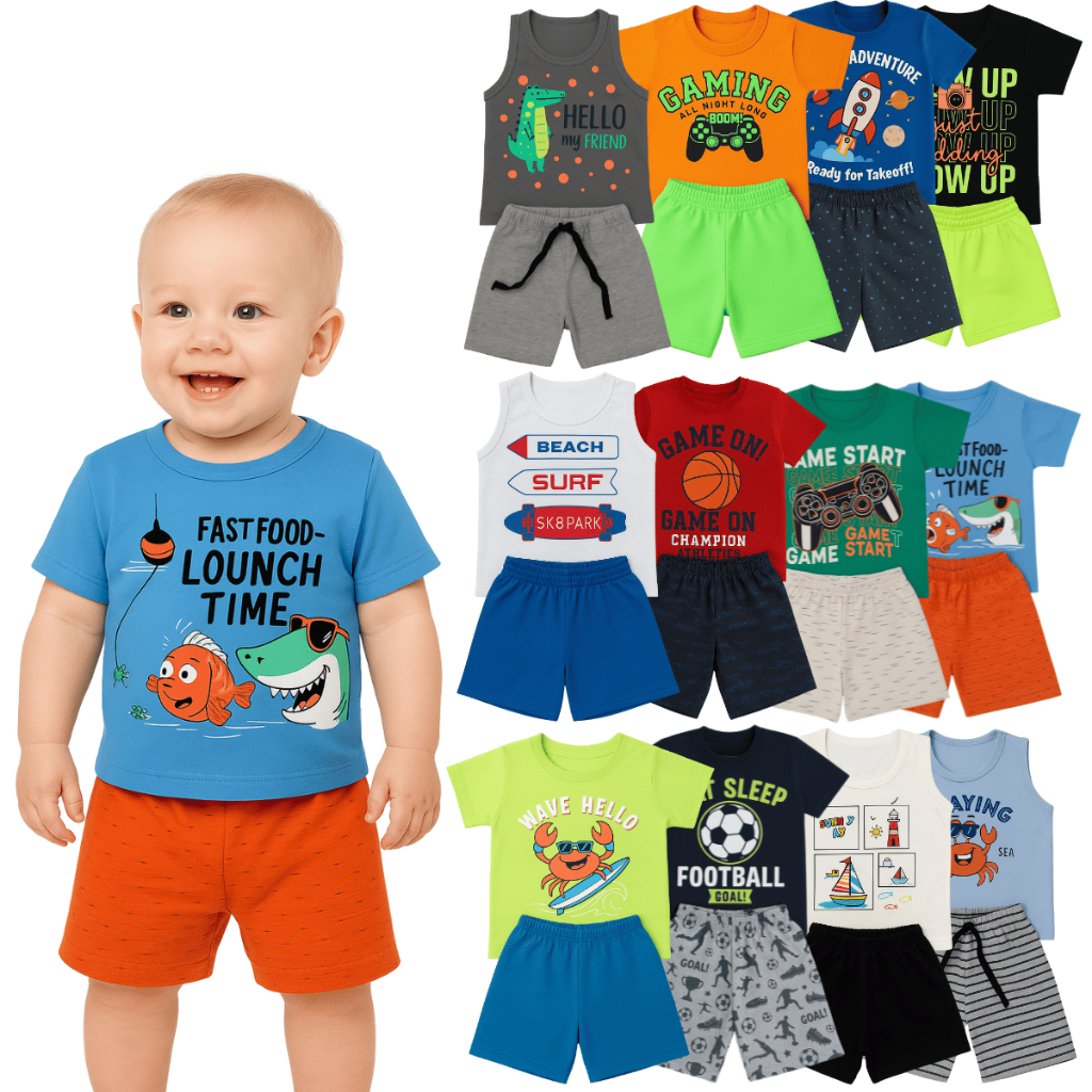 Kit com 2 ou 10 Peças de Roupas Menino Verão Infantil Bebê - Kit 2 ou 5 Conjunto Verão