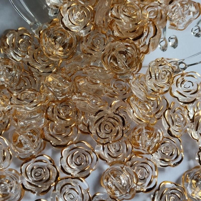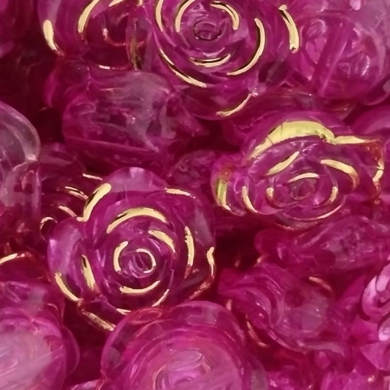 Rosa Passante Com Detalhes Dourado 18mm Artesanato e Bijuterias