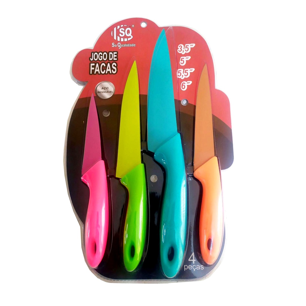Jogo de Facas de Cozinha Churrasco Aço Inoxidável Colorida Kit com 4 Facas Coloridas