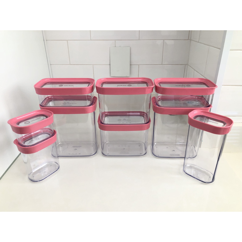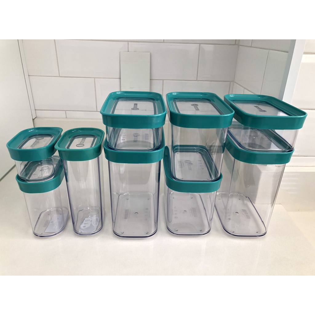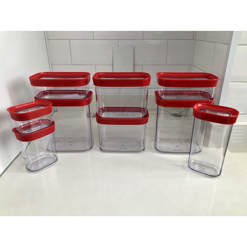 Kit Conjunto Cozinha Com 9 Potes Herméticos para Mantimentos e Temperos - 09 Peças