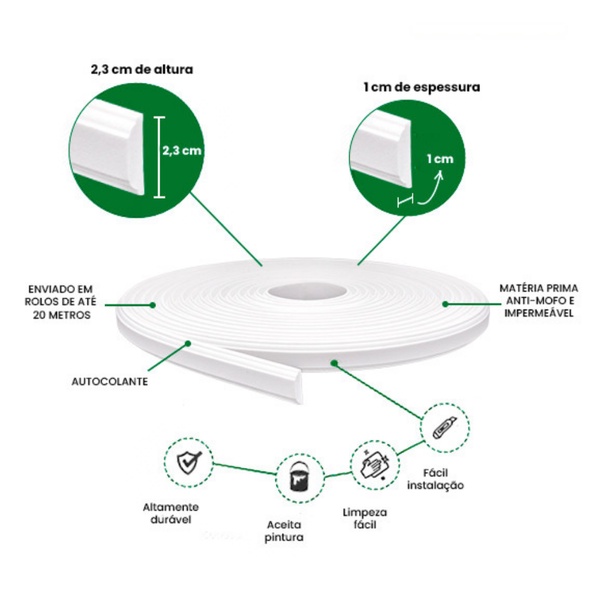 Rodameio Boiserie EVA Autocolante 2,3cm Rm61 6 Metros MeuRodapé