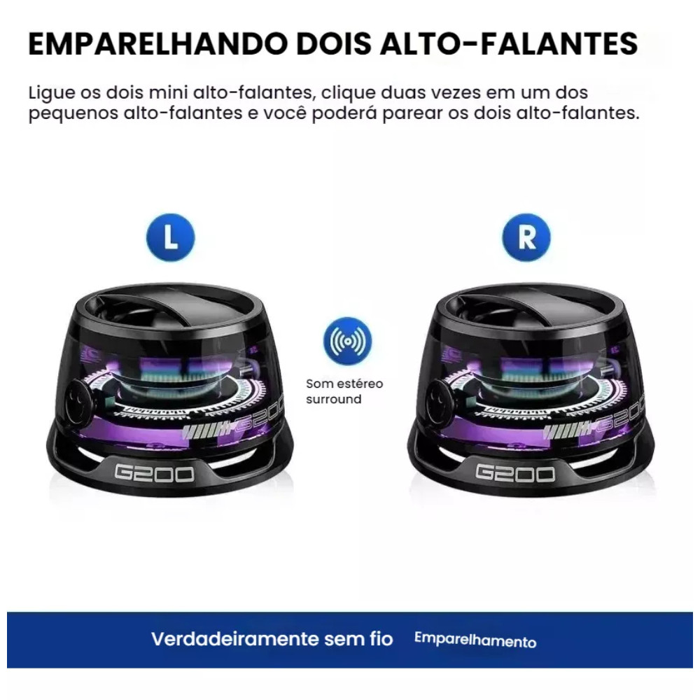 Mini Caixa de Som Portátil Magnética Ezra Bluetooth 5.4 Subwoofer IPX6 G200 Bateria 6h
