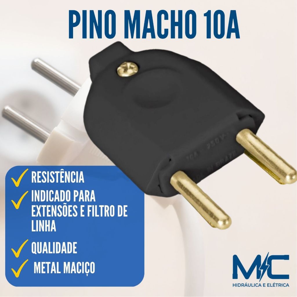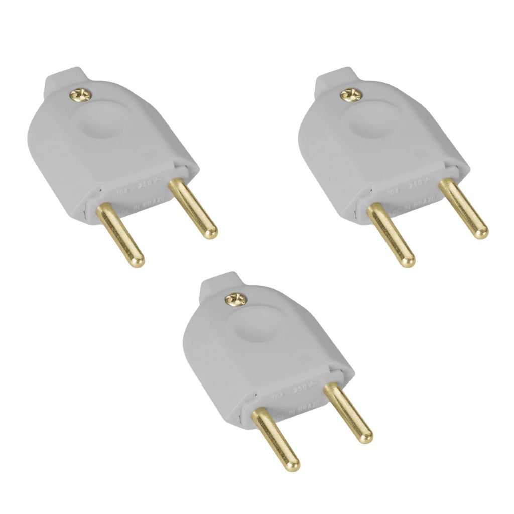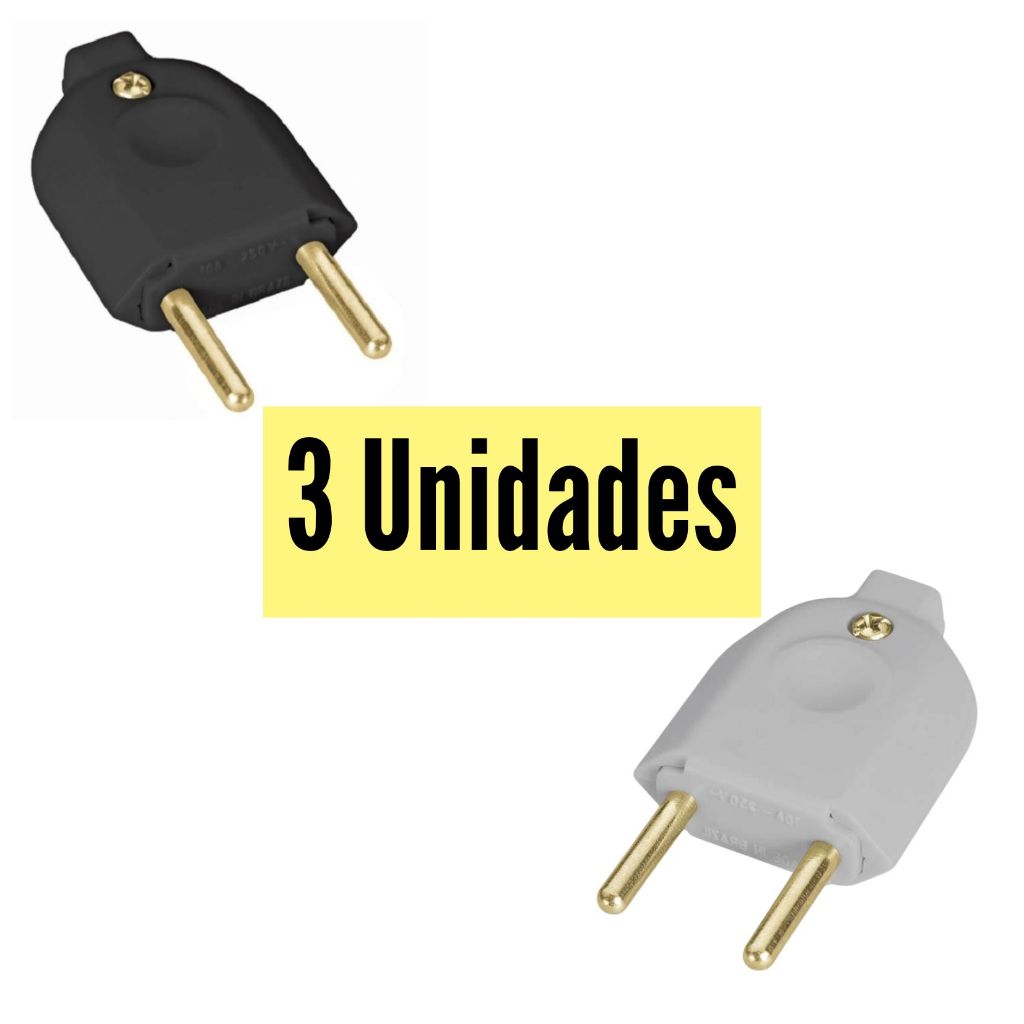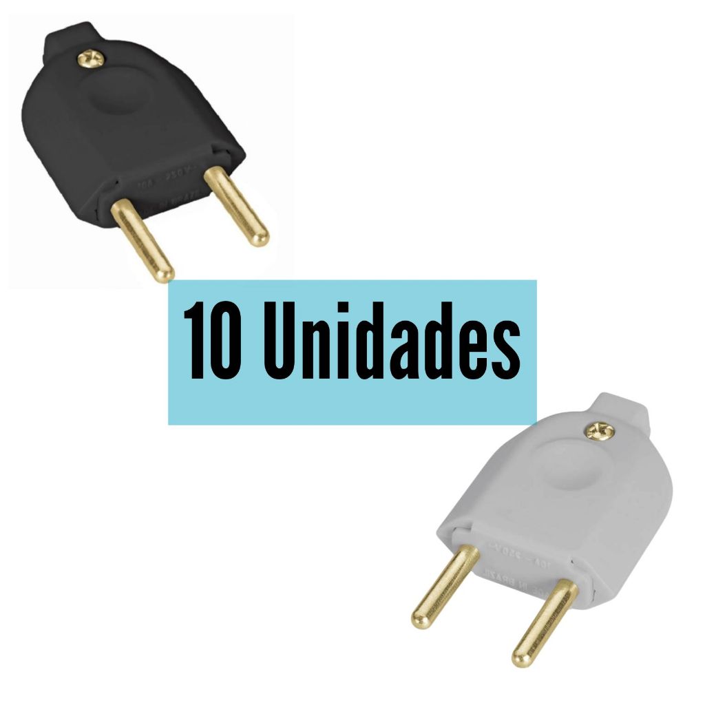 Pino Macho Preto ou Branco Plug Adaptador de Tomada 2 Pinos 10A