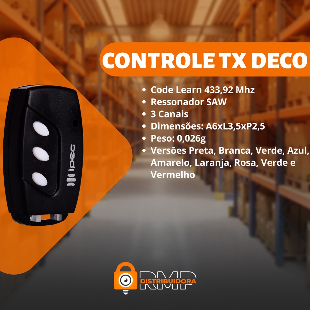 Controle Remoto Tx Deco para Portão Eletrônico e Alarme 433Mhz Ipec Garen Ppa Ecp