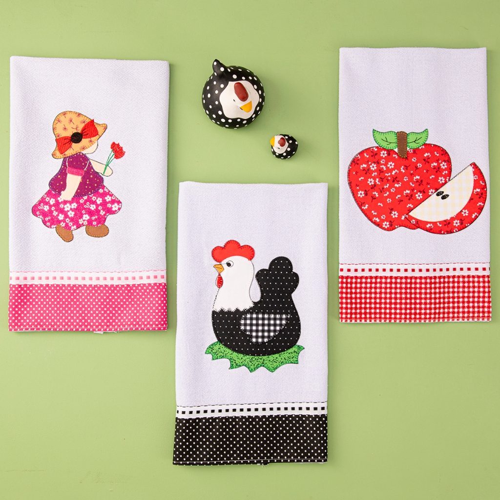 Pano De Prato Bordado Barrado Patchwork Atacado Kit 10 Peças