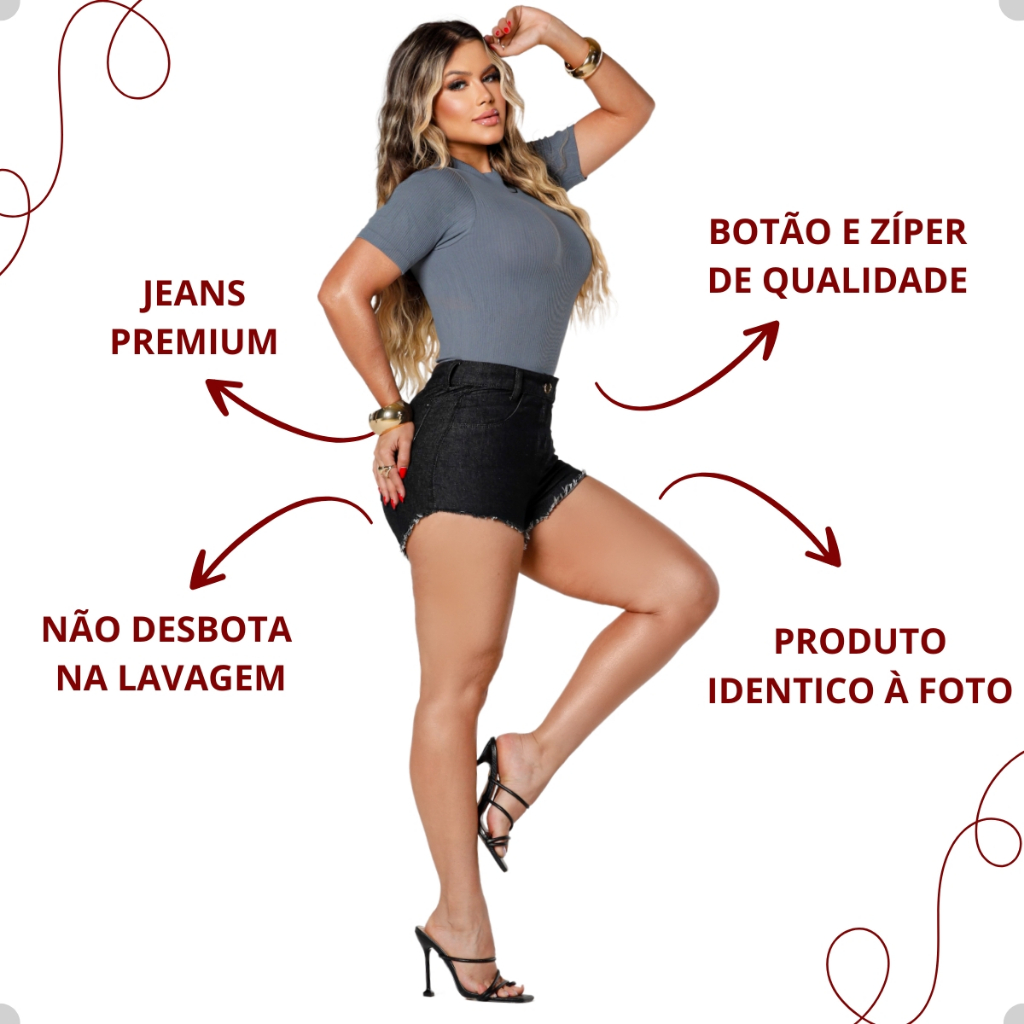 Short Jeans Feminino Curto Desfiado Rasgado Destroyed Levanta Bumbum Cintura Alta Cós Alto