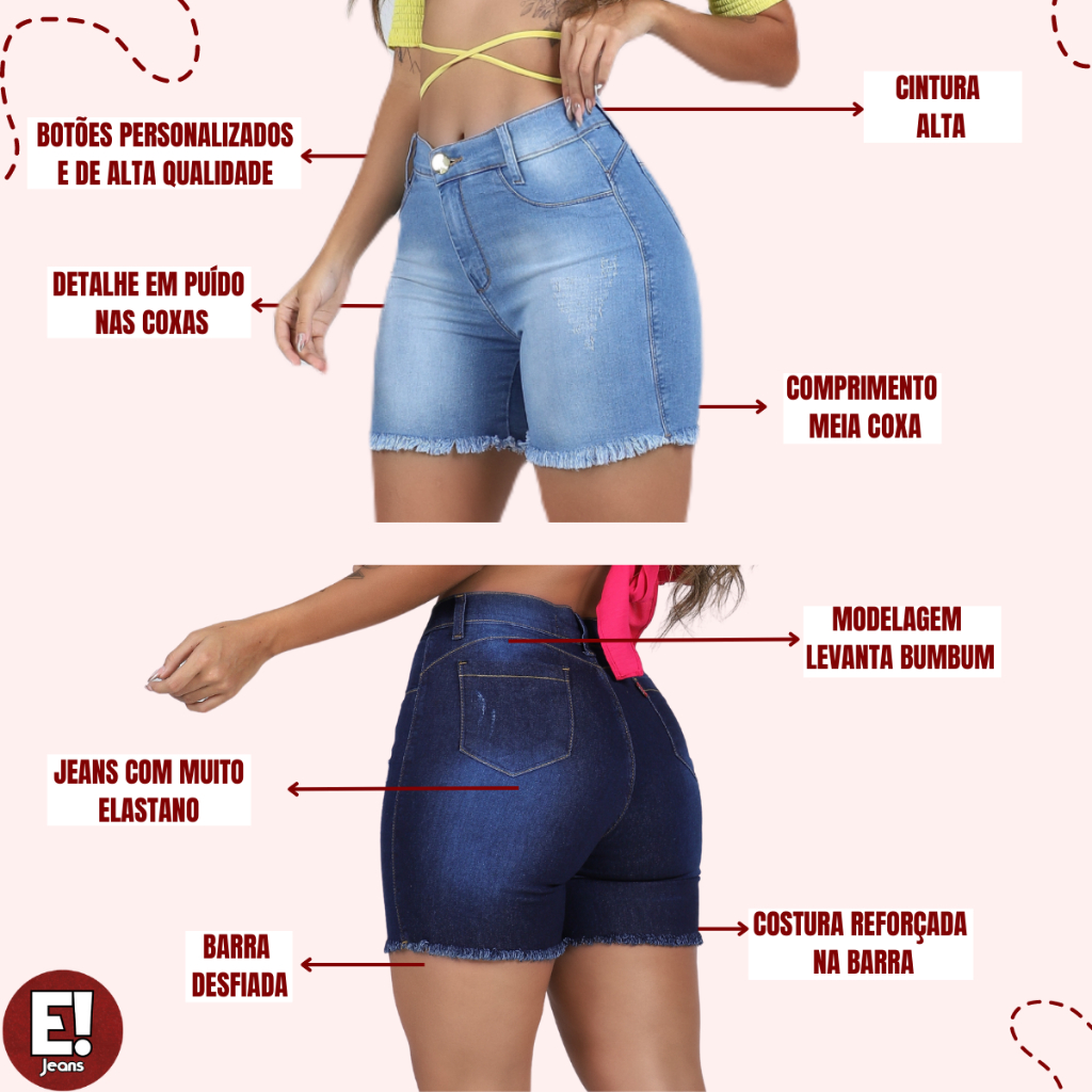 Bermuda Meia Coxa Jeans Cintura Alta Lycra Hot Pants Comprida