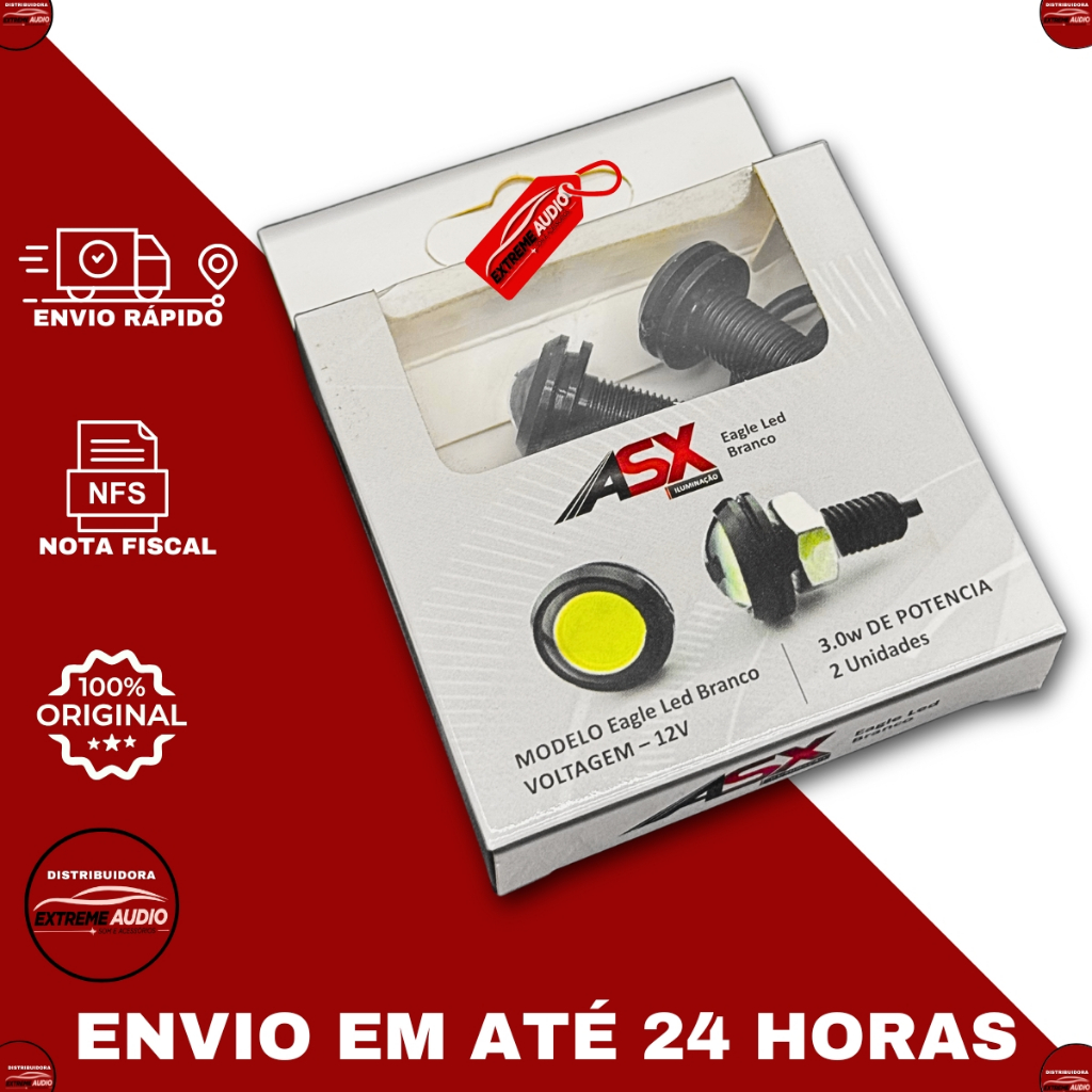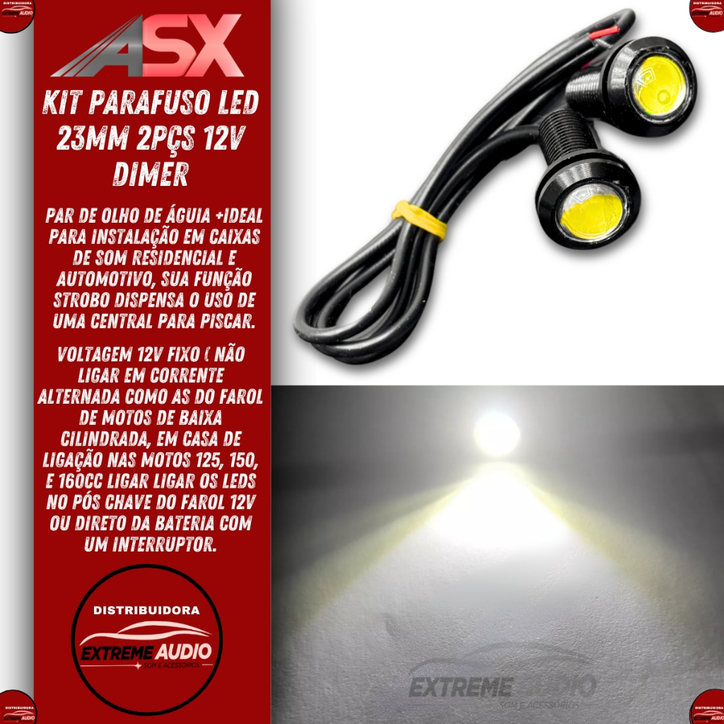 Lampada Led Olho de Boi Eagle asx 5w 6000k Led Universal Farol ré som automotivo caixa bob modelo strobo rack