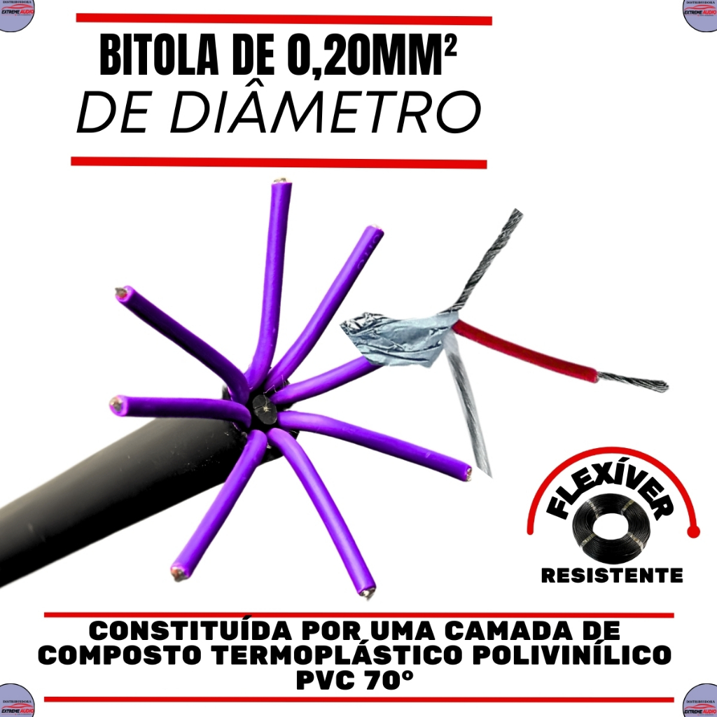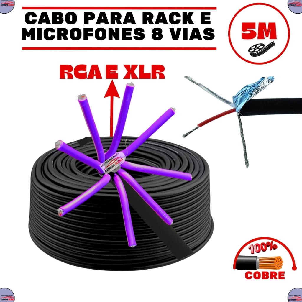 Multicabo 8 Vias 8x24 Awg Mancini Cabo Medusa Multi vias Rack Movel Som Automotivo 5 Metros
