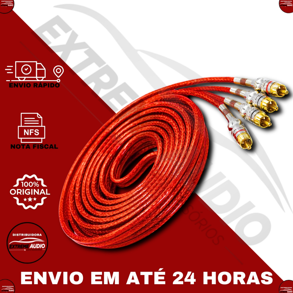 Cabo Rca 2X2 5M Pro Plug Metal Tripla Blindagem Vermelho