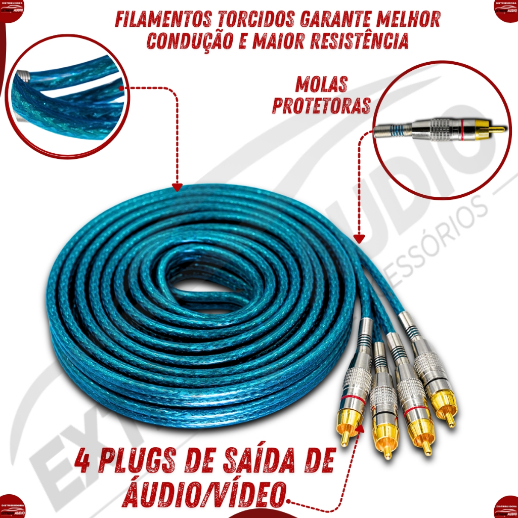Cabo Rca Uppertech Blindado 5M 4Plugs De Saida Audio/Video