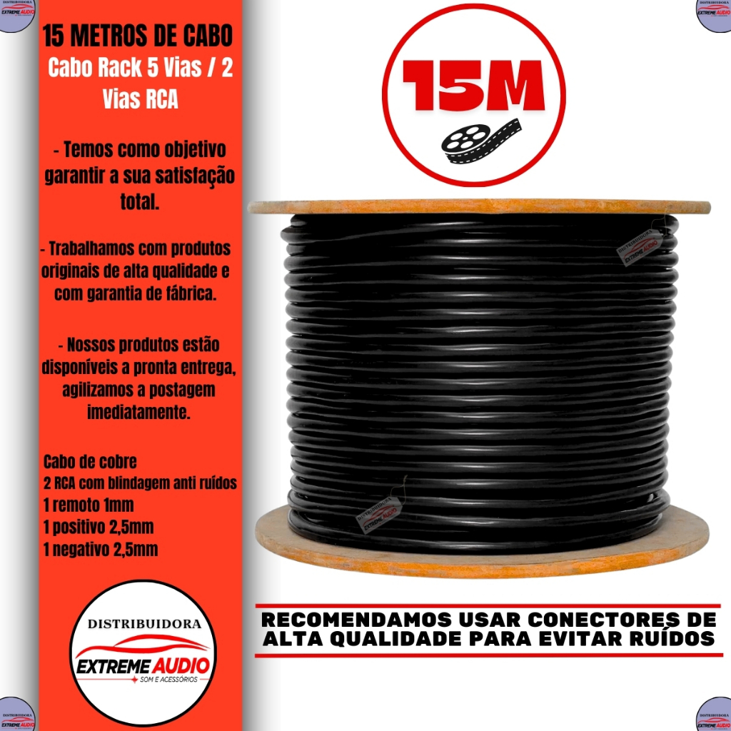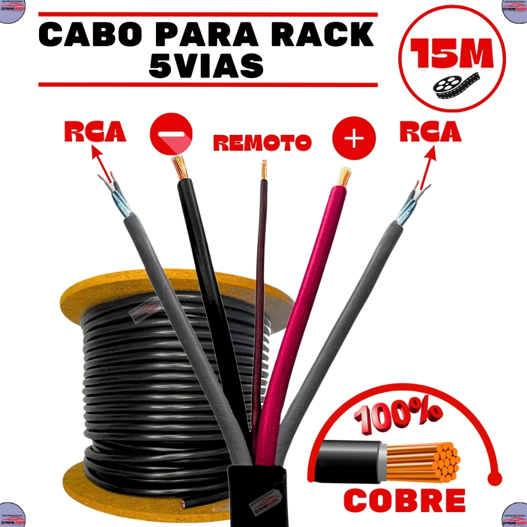 Fio Multicabo Rack Som Profissional 5 Vias 2x24 Awg 15metros