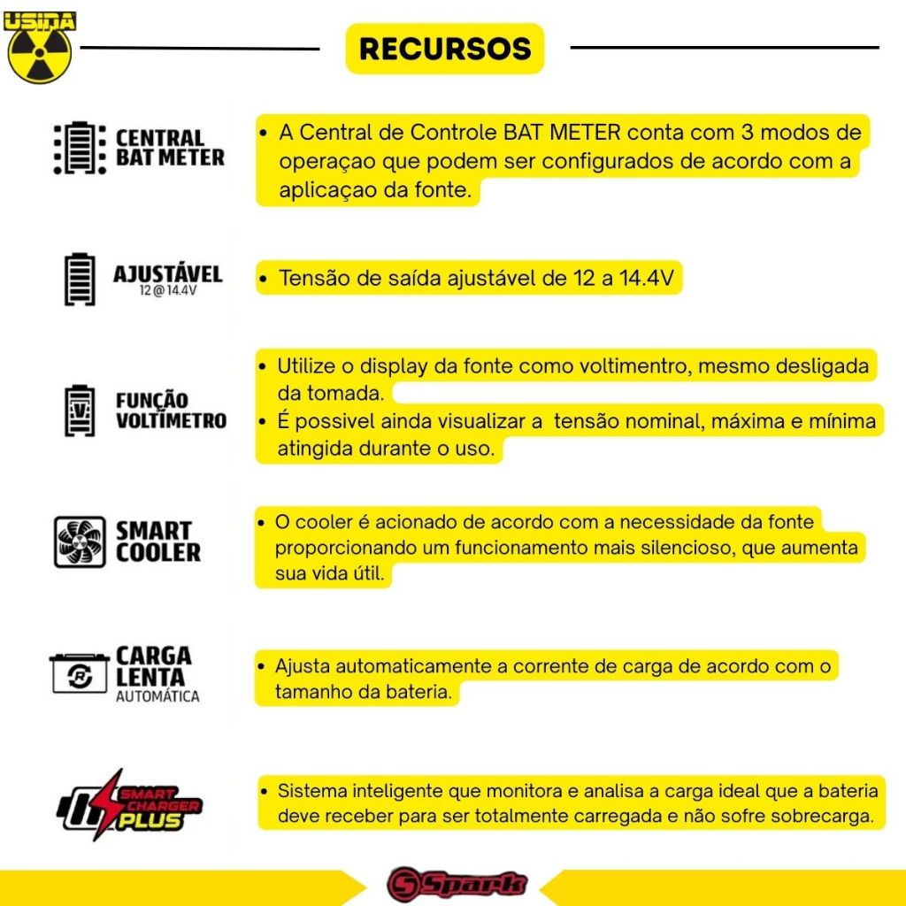 Fonte Carregador Usina Smart 12v 200a Bivolt AutomáTico Bat Meter