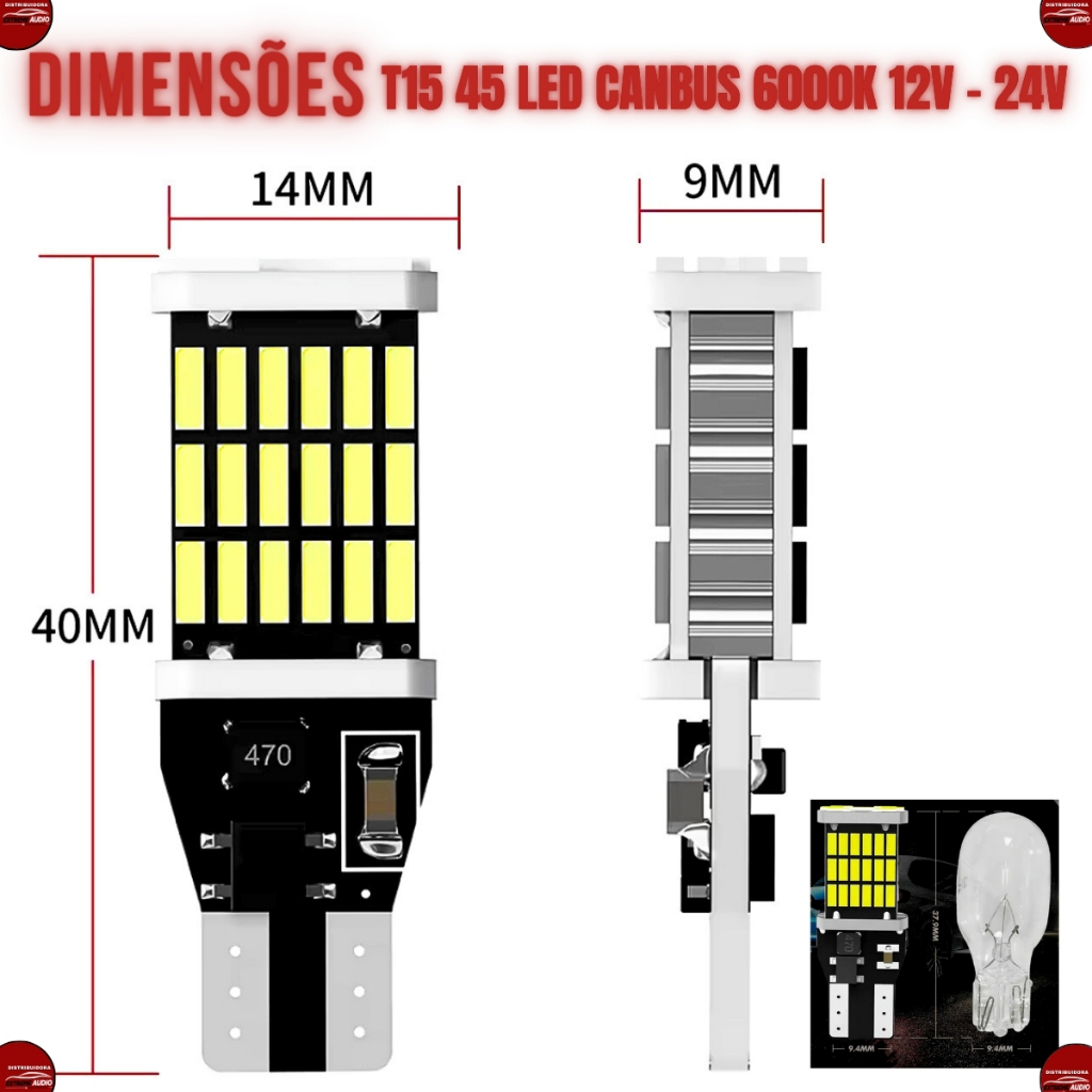 Led T15 Luz De Estacionamento Ré Canceler 12V 9W 6000K 1 Par