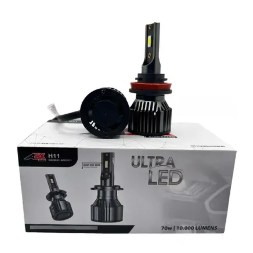 Lampada ultra led h4 h11 ASX 10000 lumens 6000k 70w + farolete 3 Pares