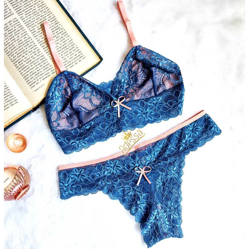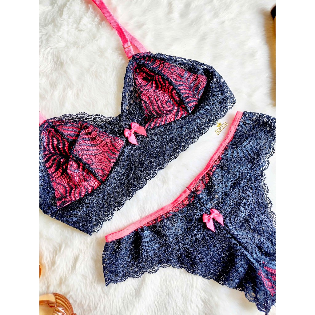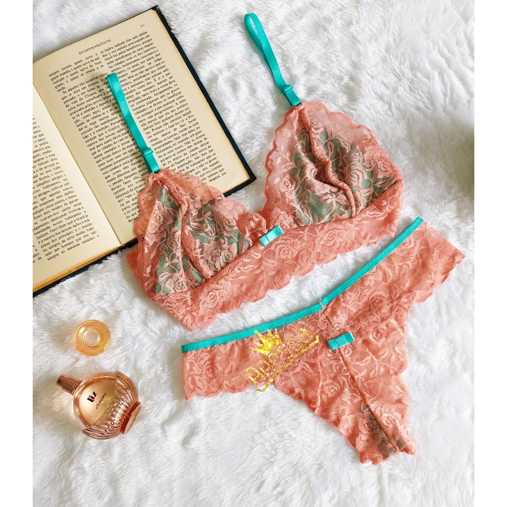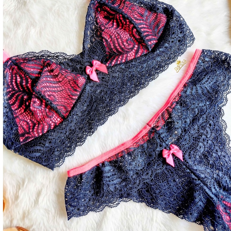 Conjunto Lingerie Alice BICOLOR Renda Sutiã Estilo Cropped Sensual CJAL010