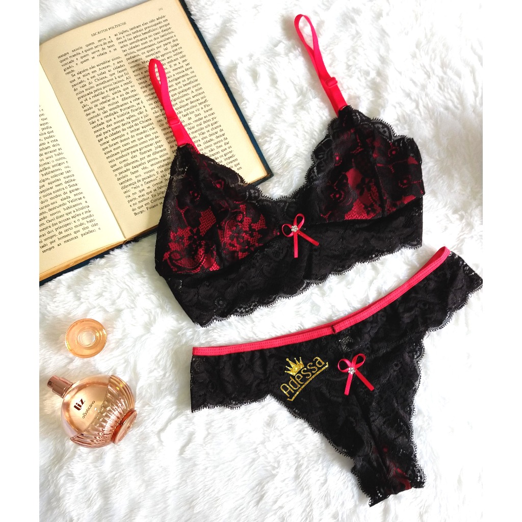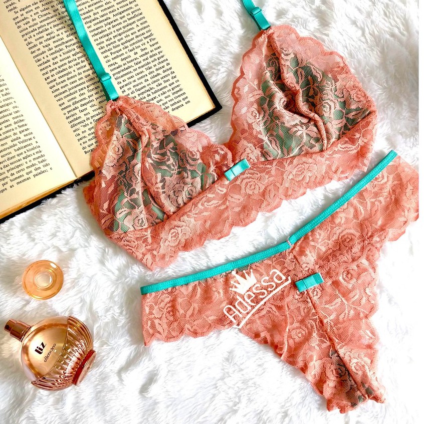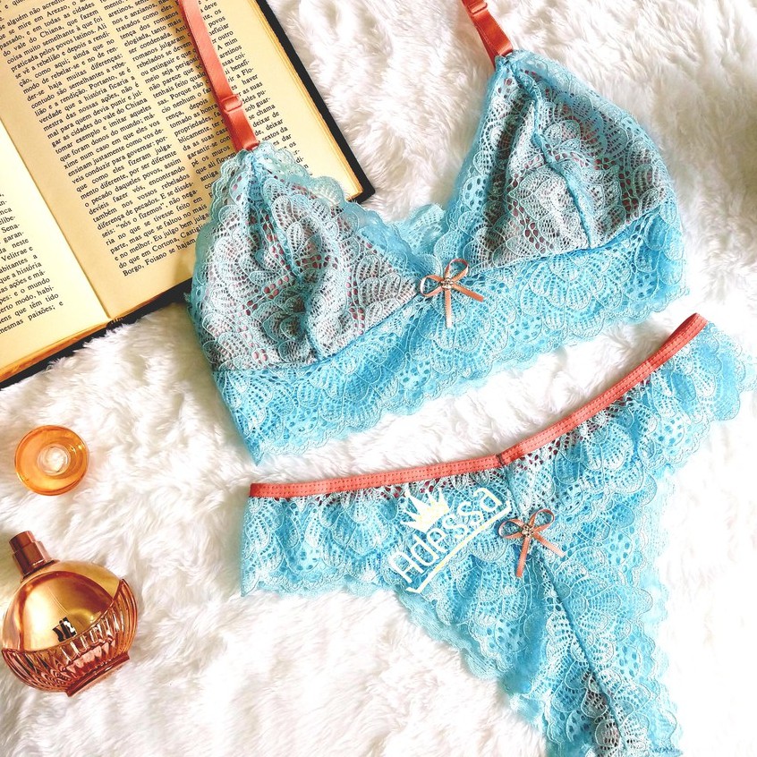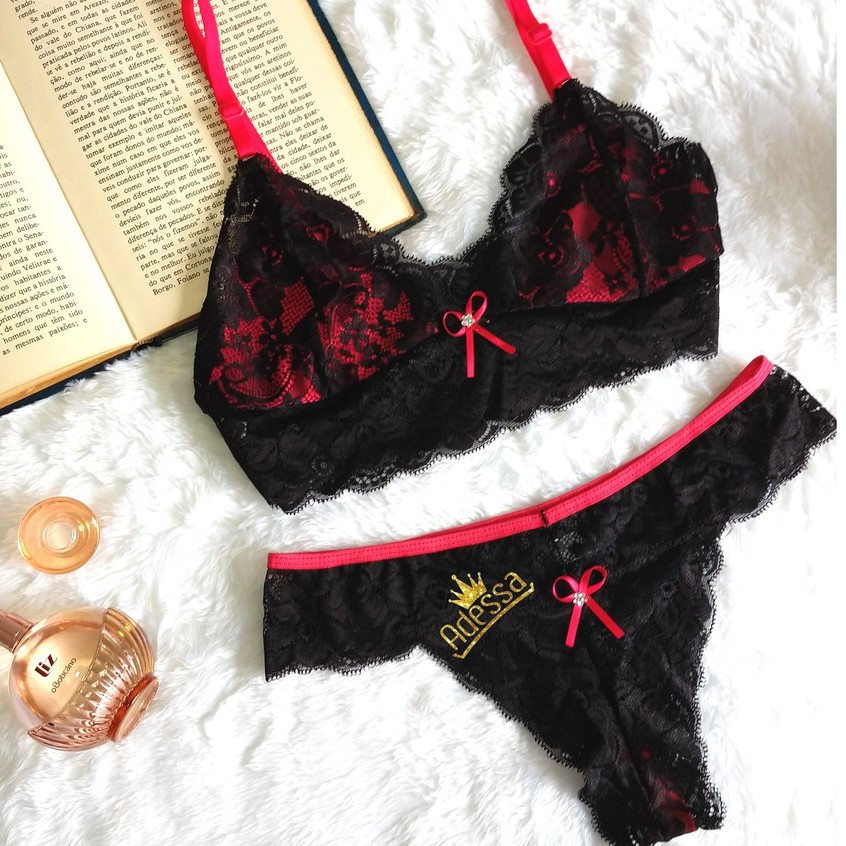 Conjunto Lingerie Alice BICOLOR Renda Sutiã Estilo Cropped Sensual CJAL010