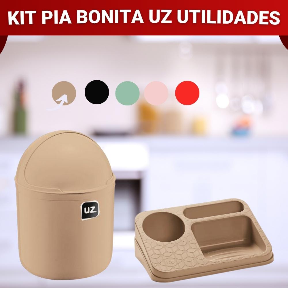 Kit Lixeira e Organizador De Pia Porta Detergente Sabão e Esponja UZ