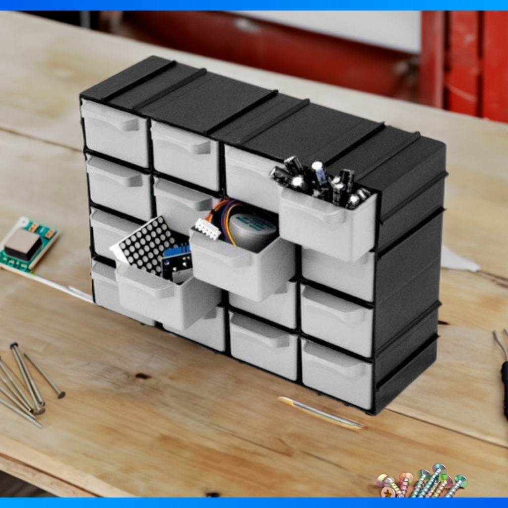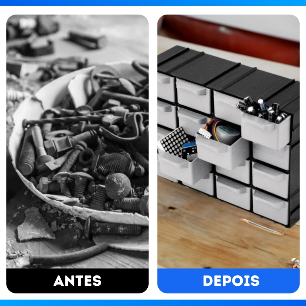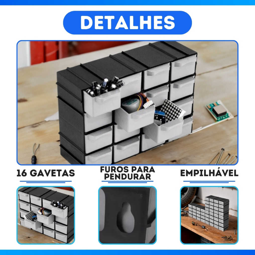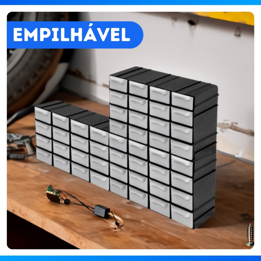 Kit 4 Caixa Gaveteiro Plástico Organizador 16 Gavetas 7001 Cor Preto