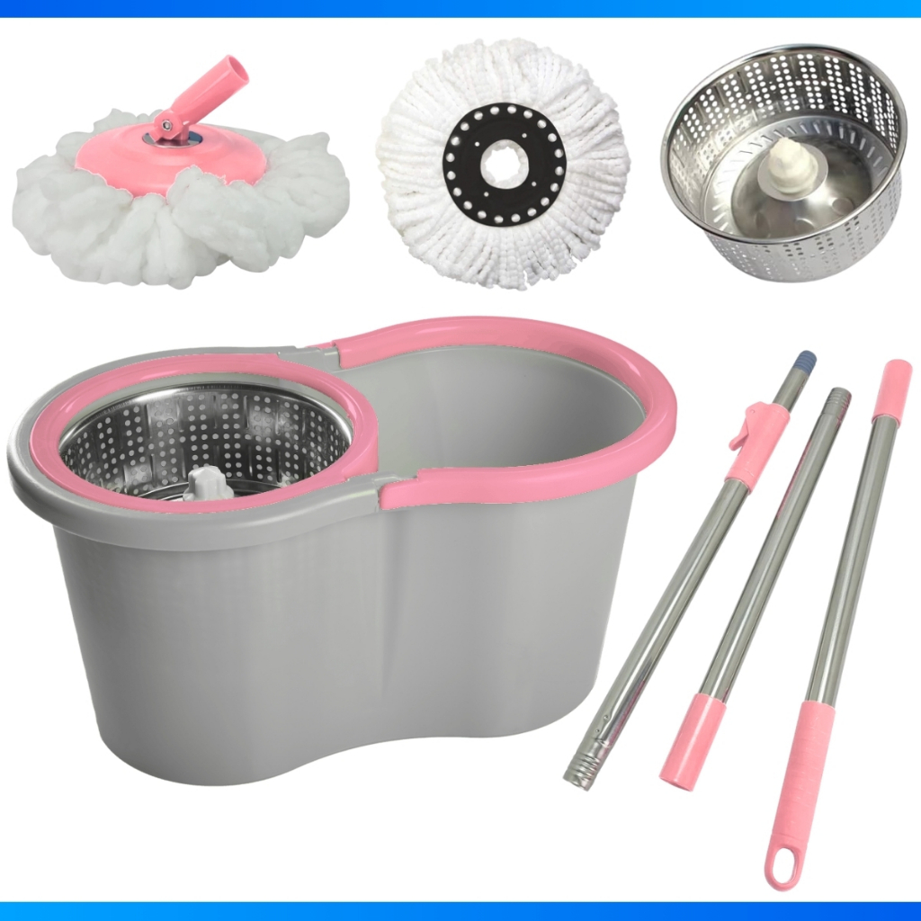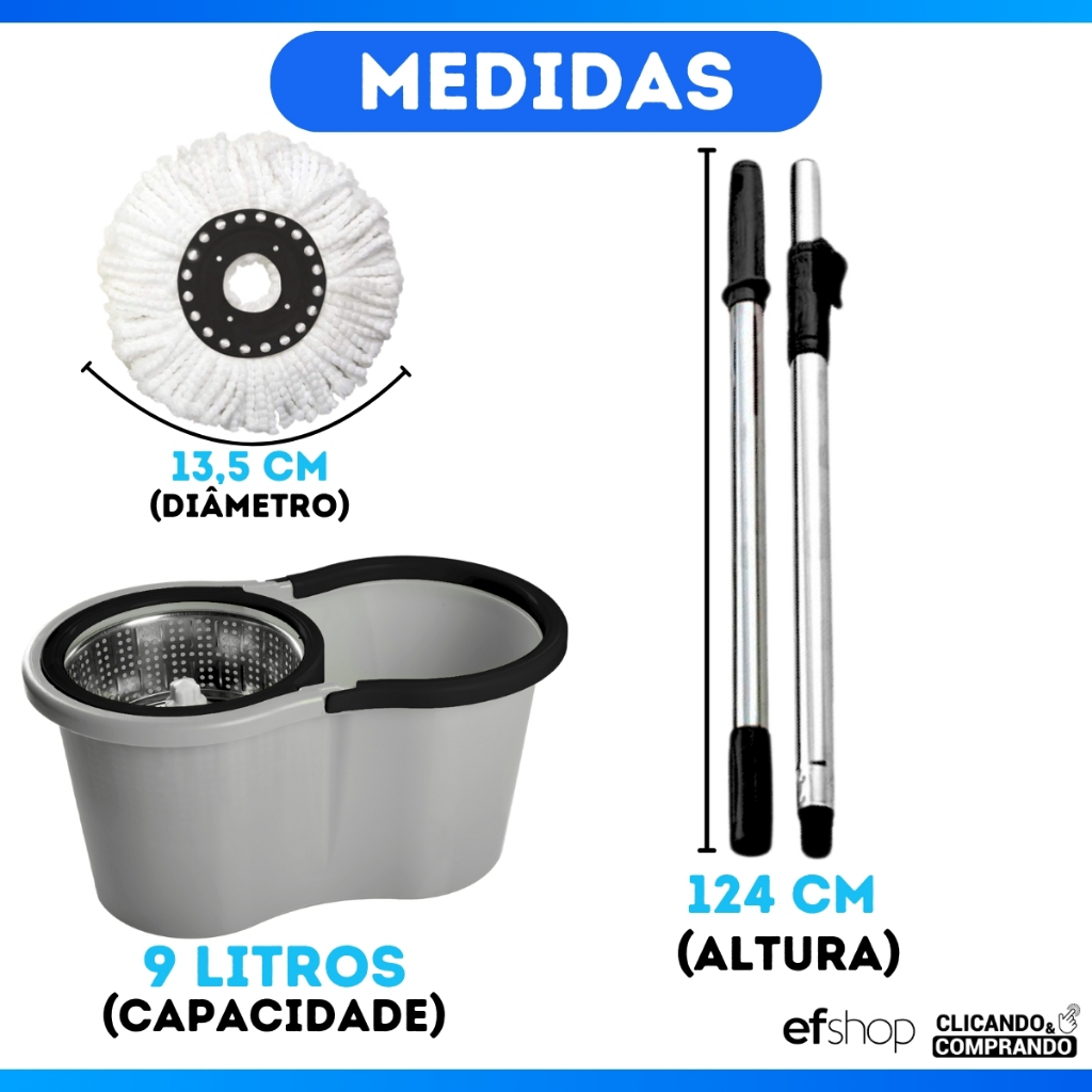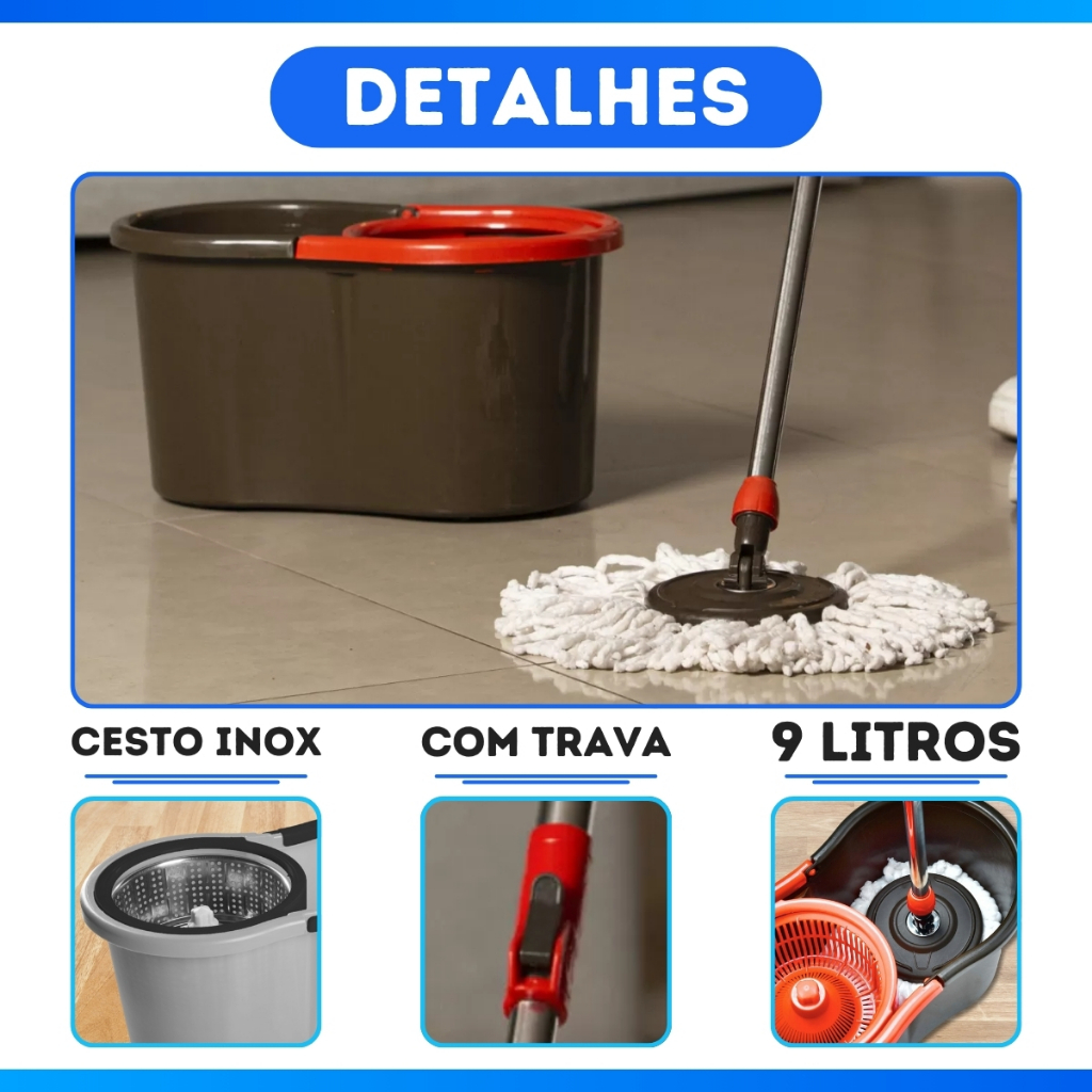 Mop Com Centrifuga Inox e Cabo em Inox Com Refil De Microfibra 9 Litros Mopi