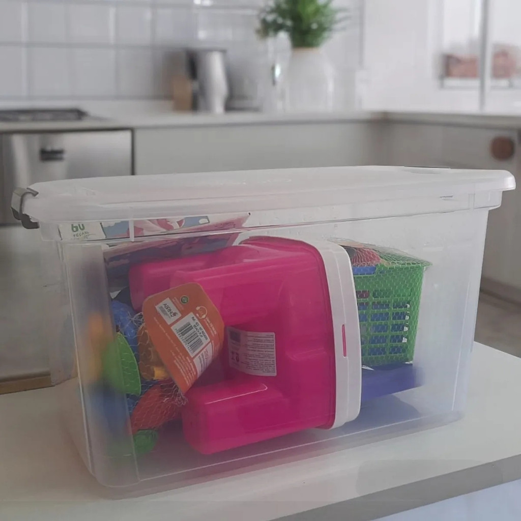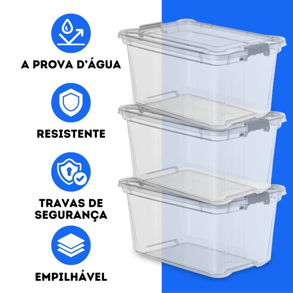 Caixa Organizadora 35 Litros Transparente C/ Trava Multiuso Conjunto Kit 04, 03, 02 ou Un